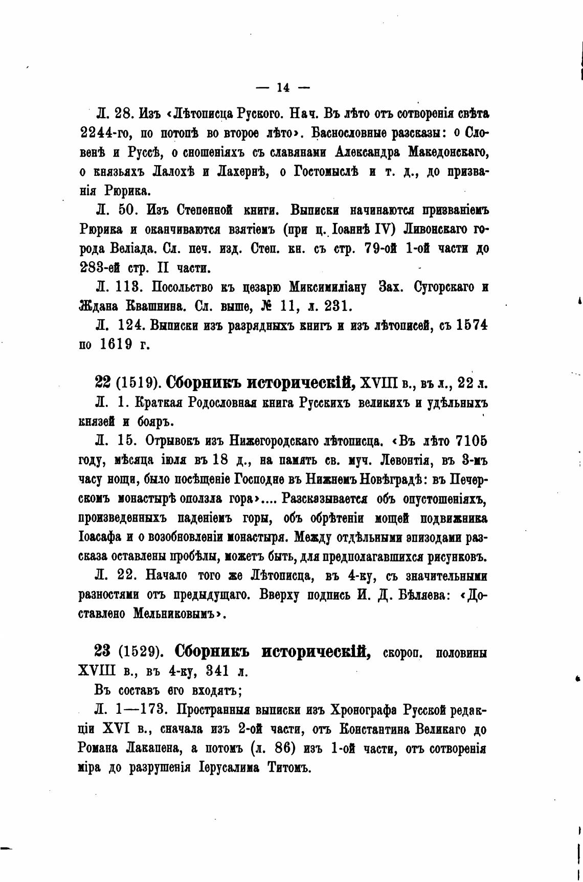 22 (1519). Сборникъ историческ1й, в., въ л., 22 л.