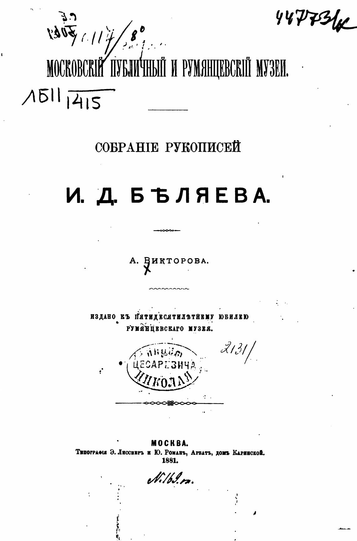 МОСКОВСК И РУМЯЩЕВСКШ МУЗЕИ.