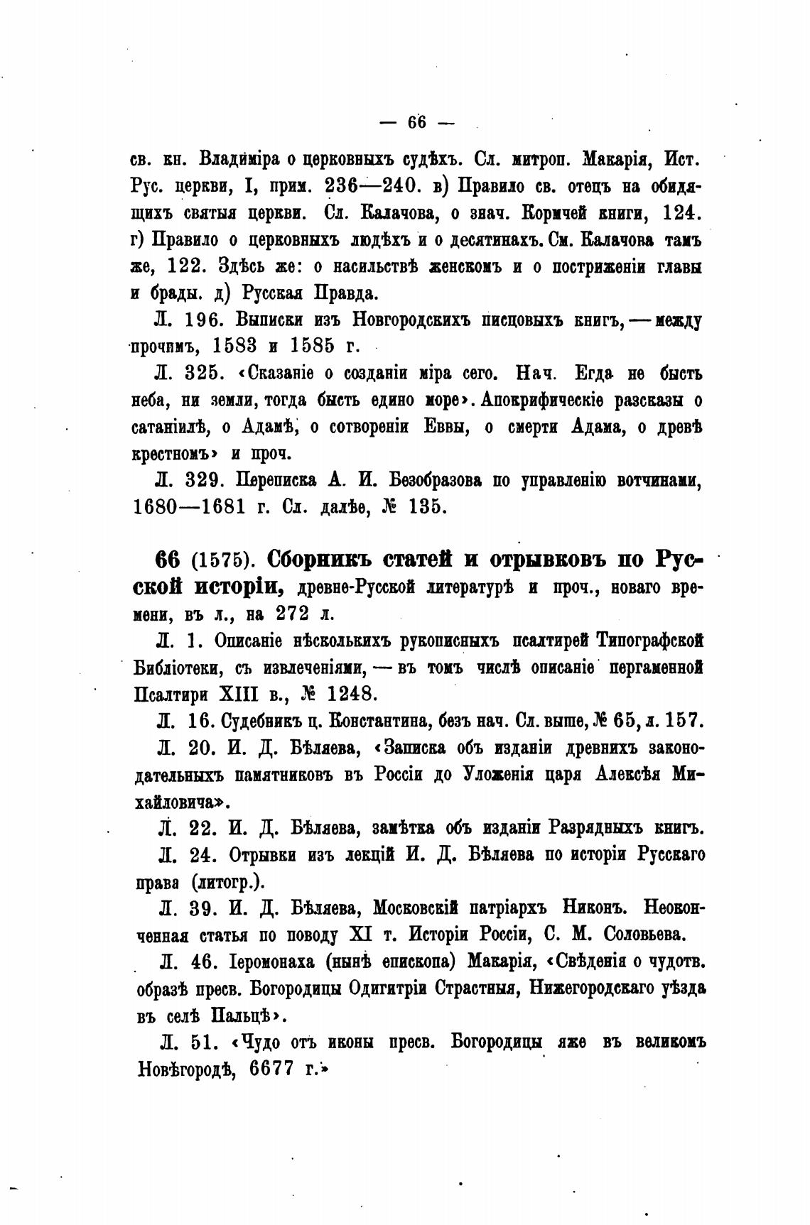 66 (1575). Сборникъ статей и отрывковъ по Рус-
