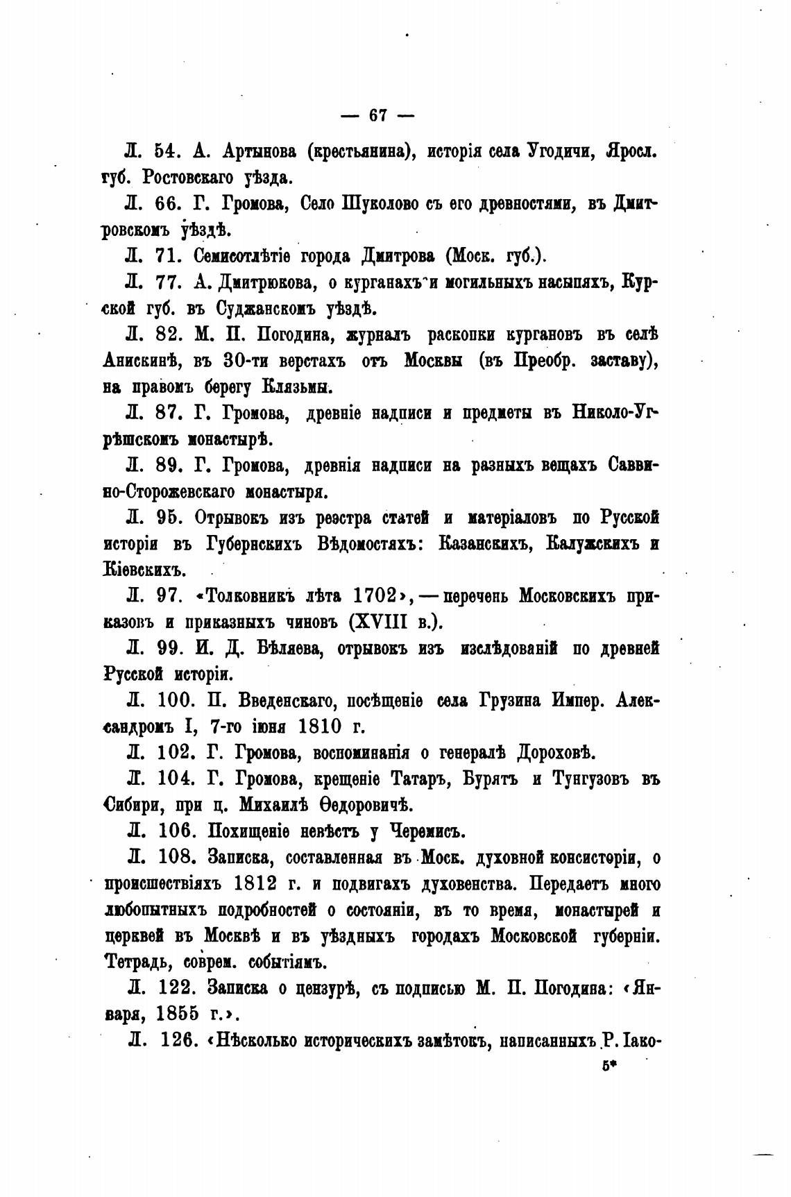 Л. 96. Отрывовъ изъ реэстра статей и мат$аловъ по Русской