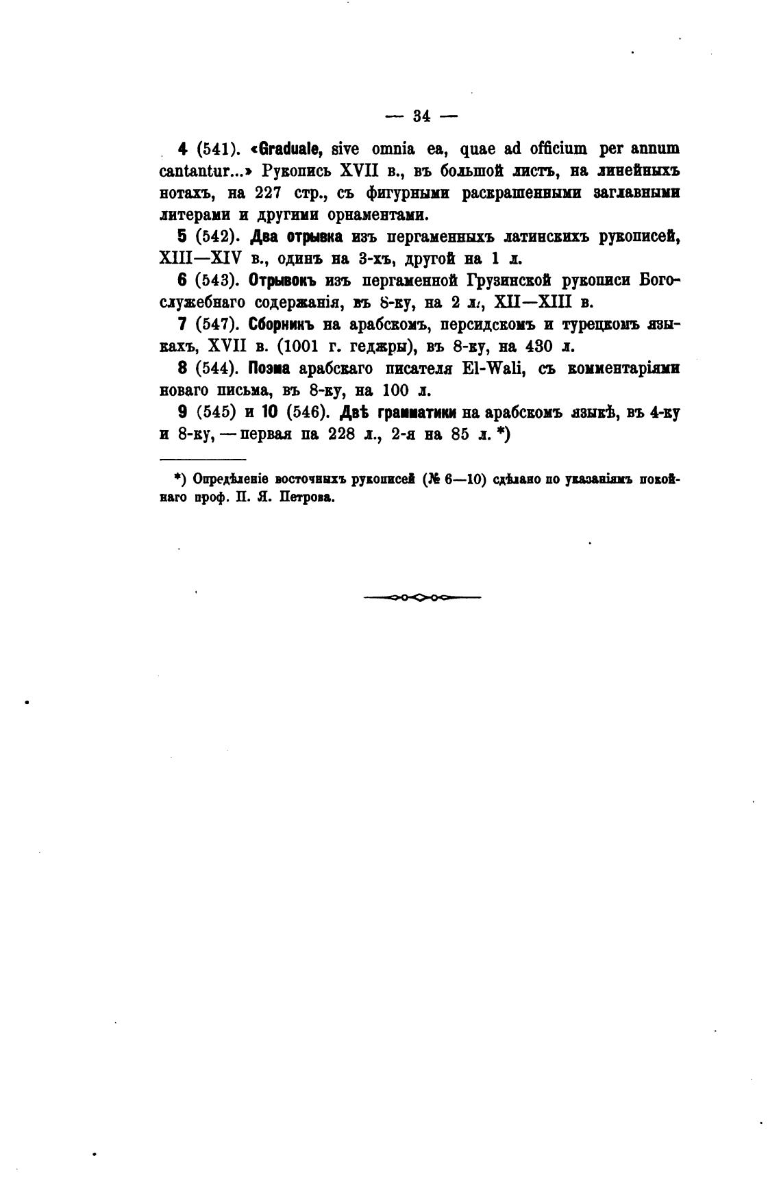 0upeBzeBie восточвыхъ рукописей (К 6—10) сдьано по yxaaaBiaMb повой-