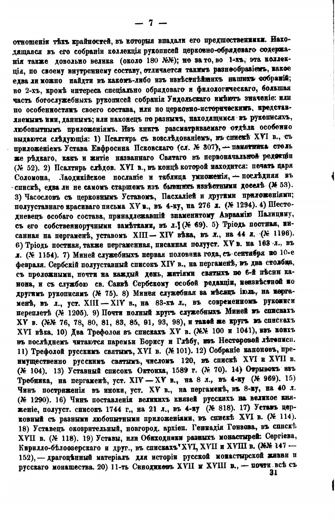(К 104). 13) Уставный списокъ Отоихв, 1589 г. (Х 70). 14) О•рнвовъ взъ