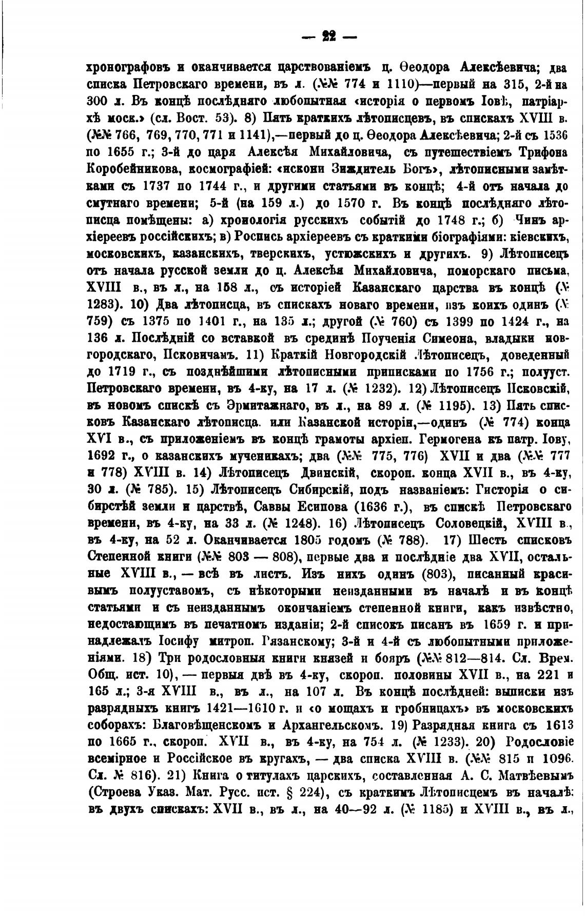 и 778) ХУ Ш в. 14) ЛЬтописецъ скороп. вонца XVII в., въ 4-ву,
