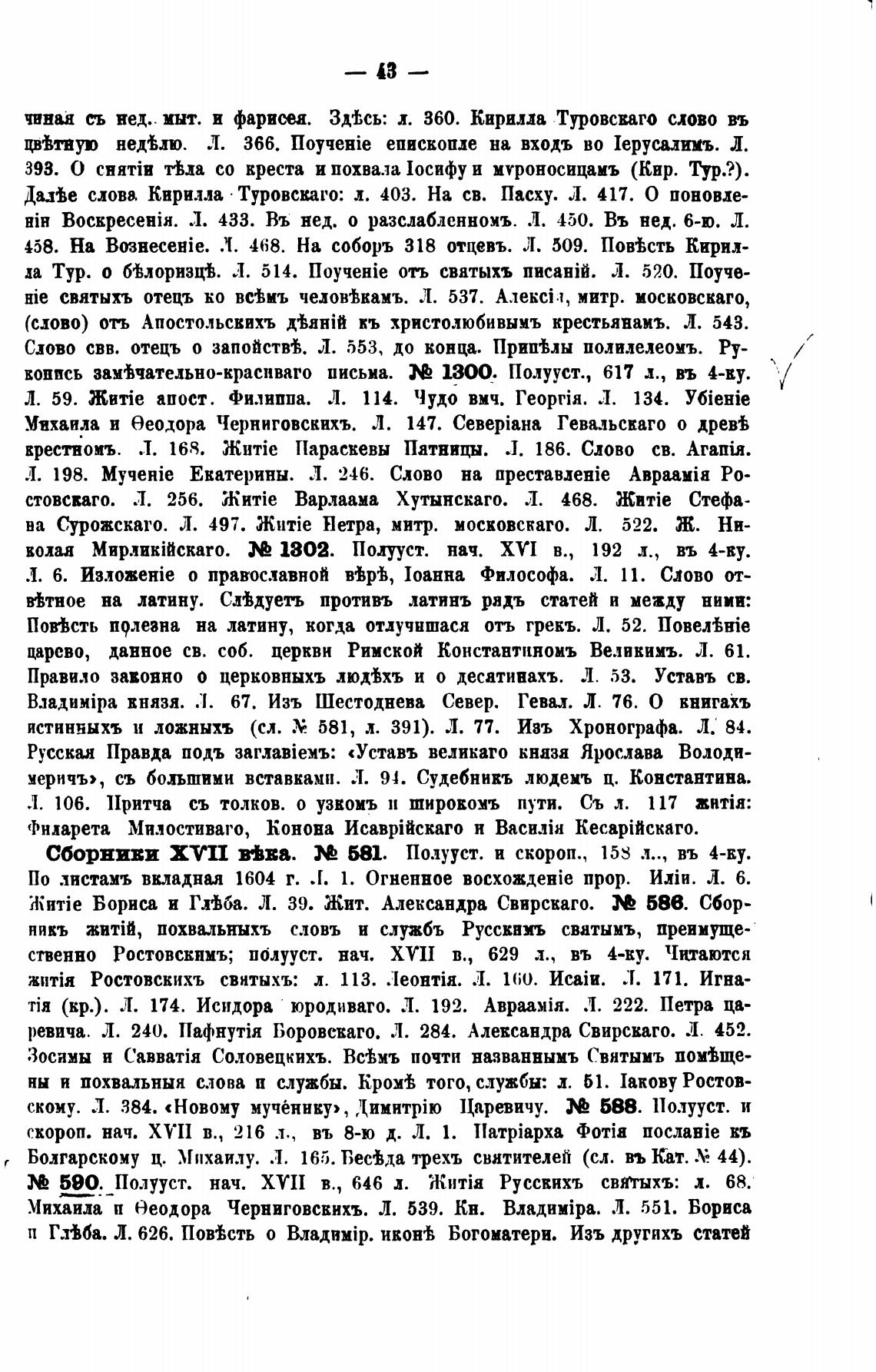слова Кирилла • Туровскаго: л. 403. На св. Пасху. Л. 417. О поновле-
