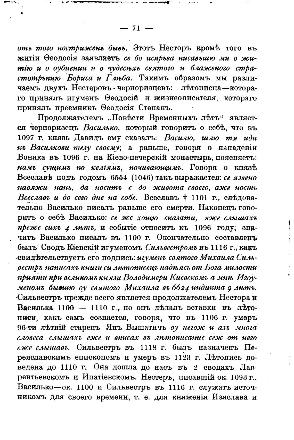 Василько—ок. 1100 и Сильвестръ въ 1116 г. служатъ источ-
