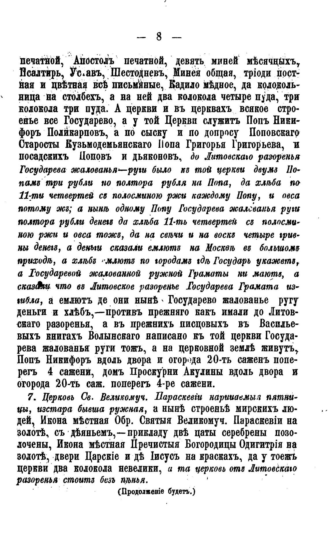 выхъ виигахъ Волынскаго написано кь той церкви Госуда-