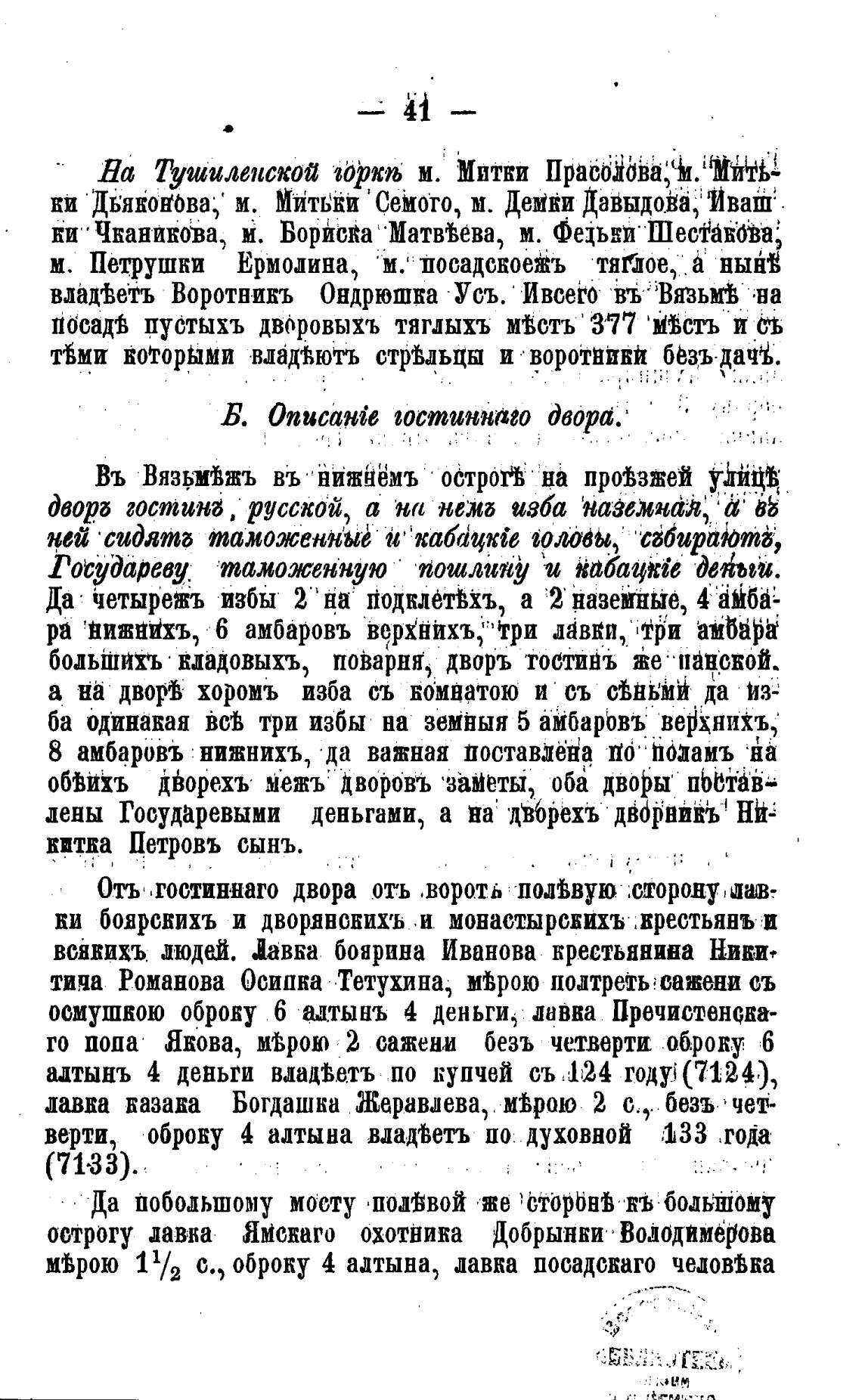 Въ Вязьм'Вжъ въ нижйёмъ • острой на прЛзжей уђйцд•