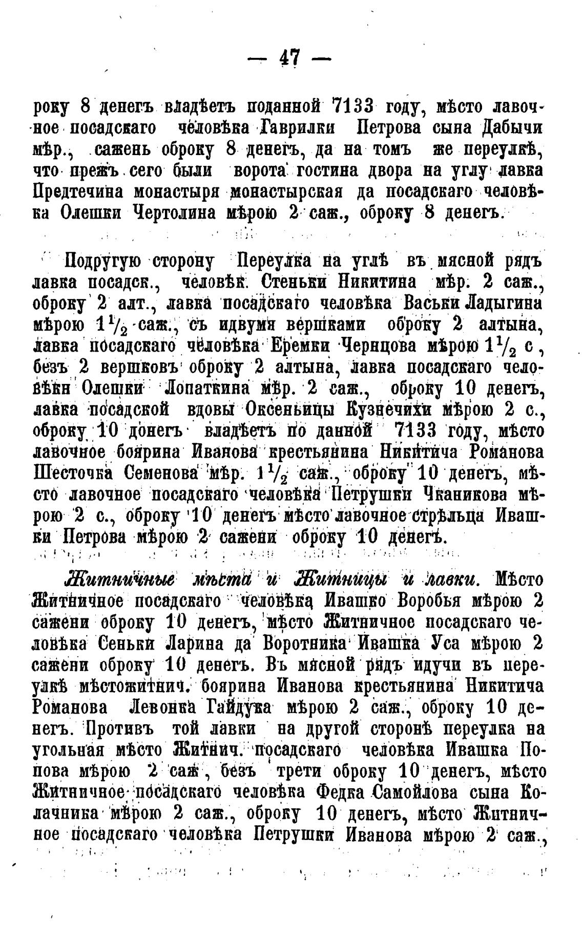 сажени оброку 10 денешь, м$сто Житничное посадскаго че-