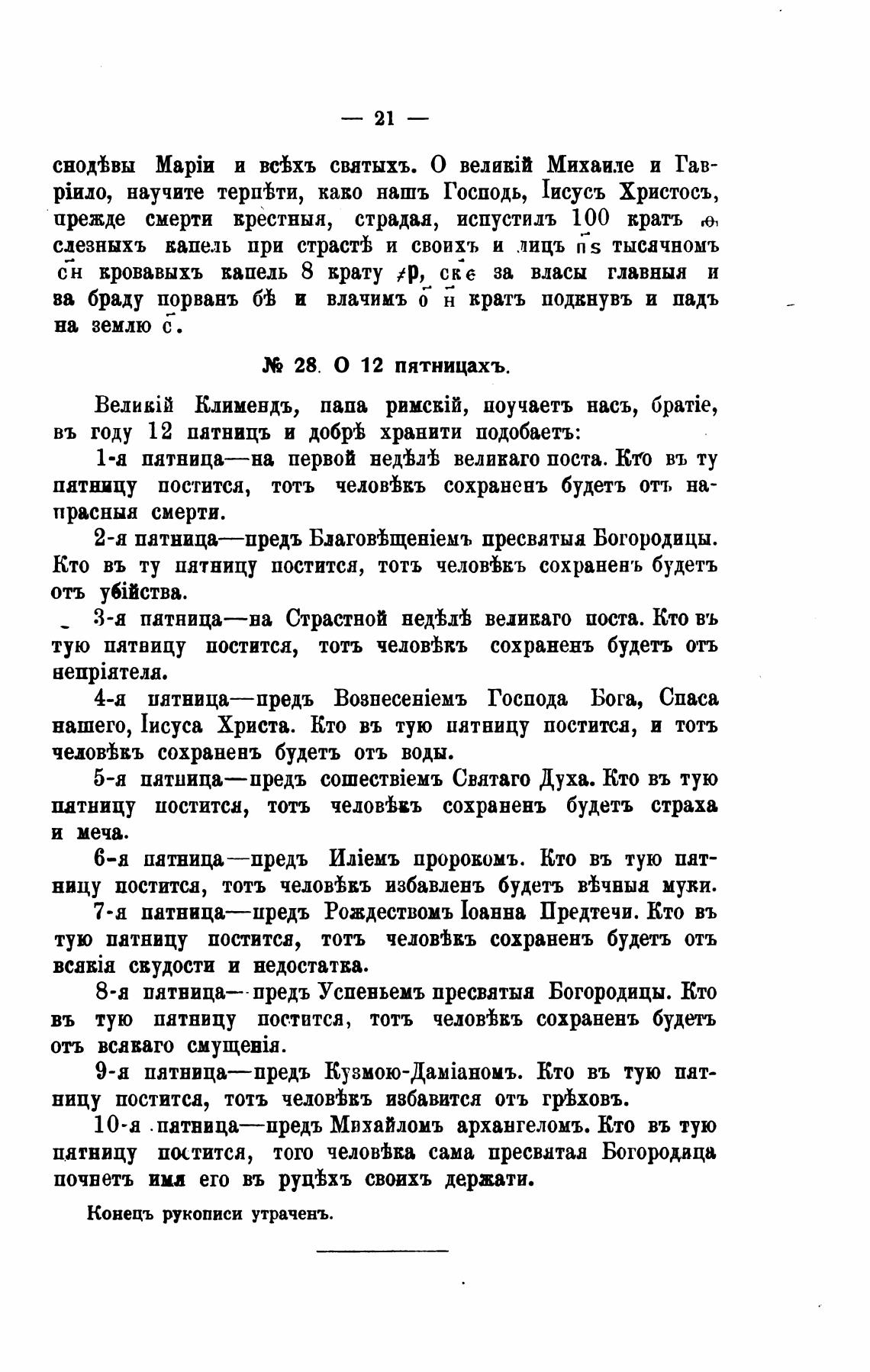 Конецъ рукописи утраченъ.