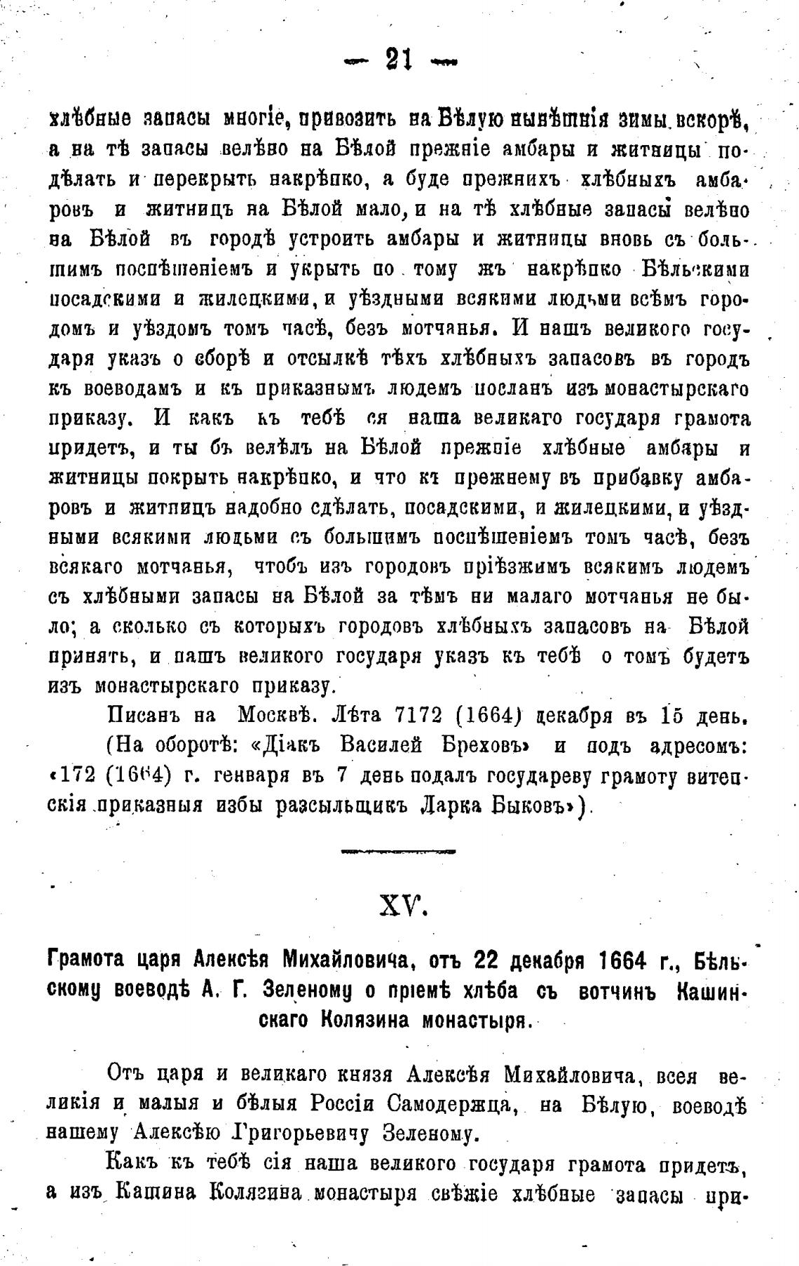 Грамота царя Алекс%я Михайловича, отъ 22 декабря 1664 г., Б%ль.