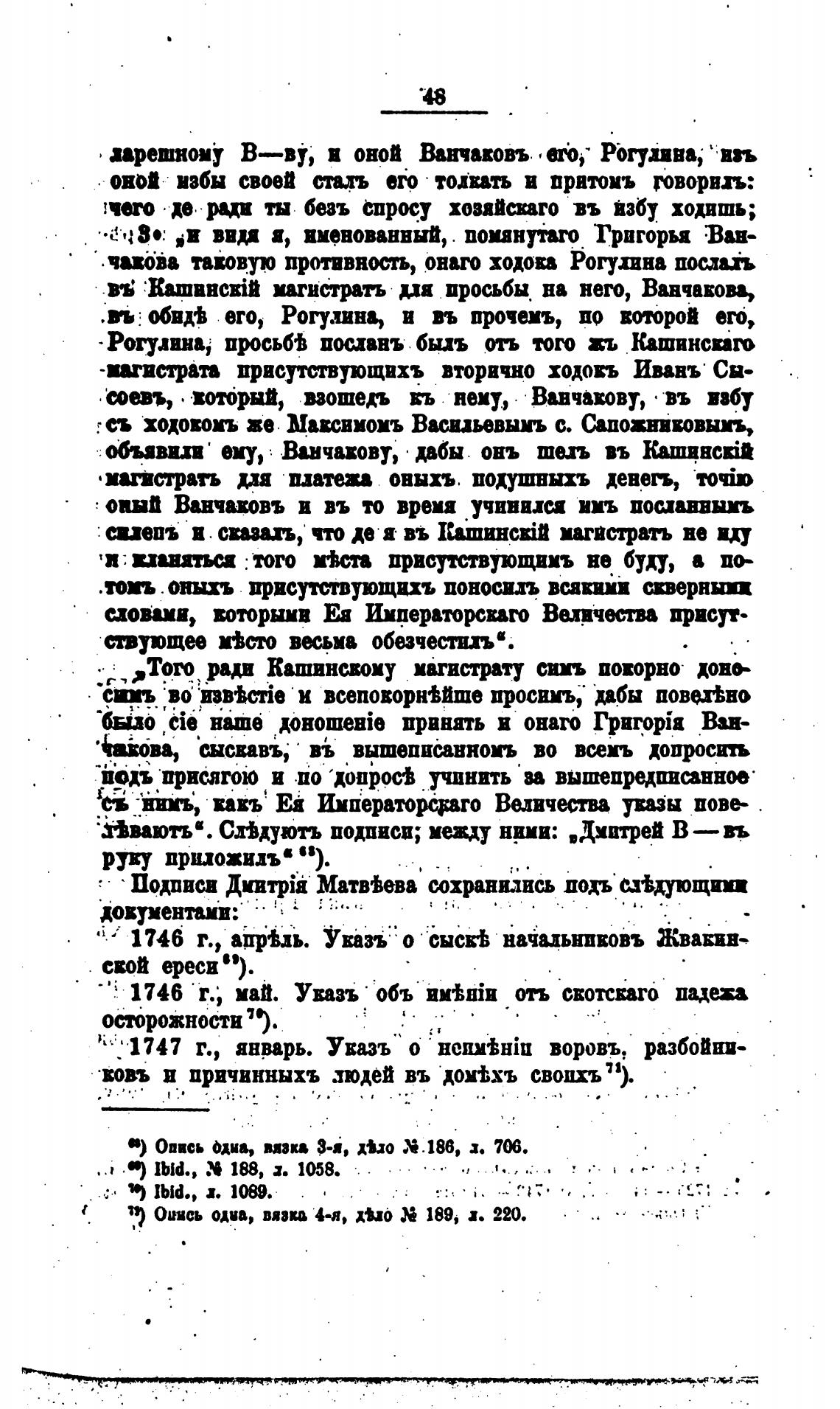 1746 г., апрьь. Увазъ о сысв•Ь наильнивовъ Жвавив-