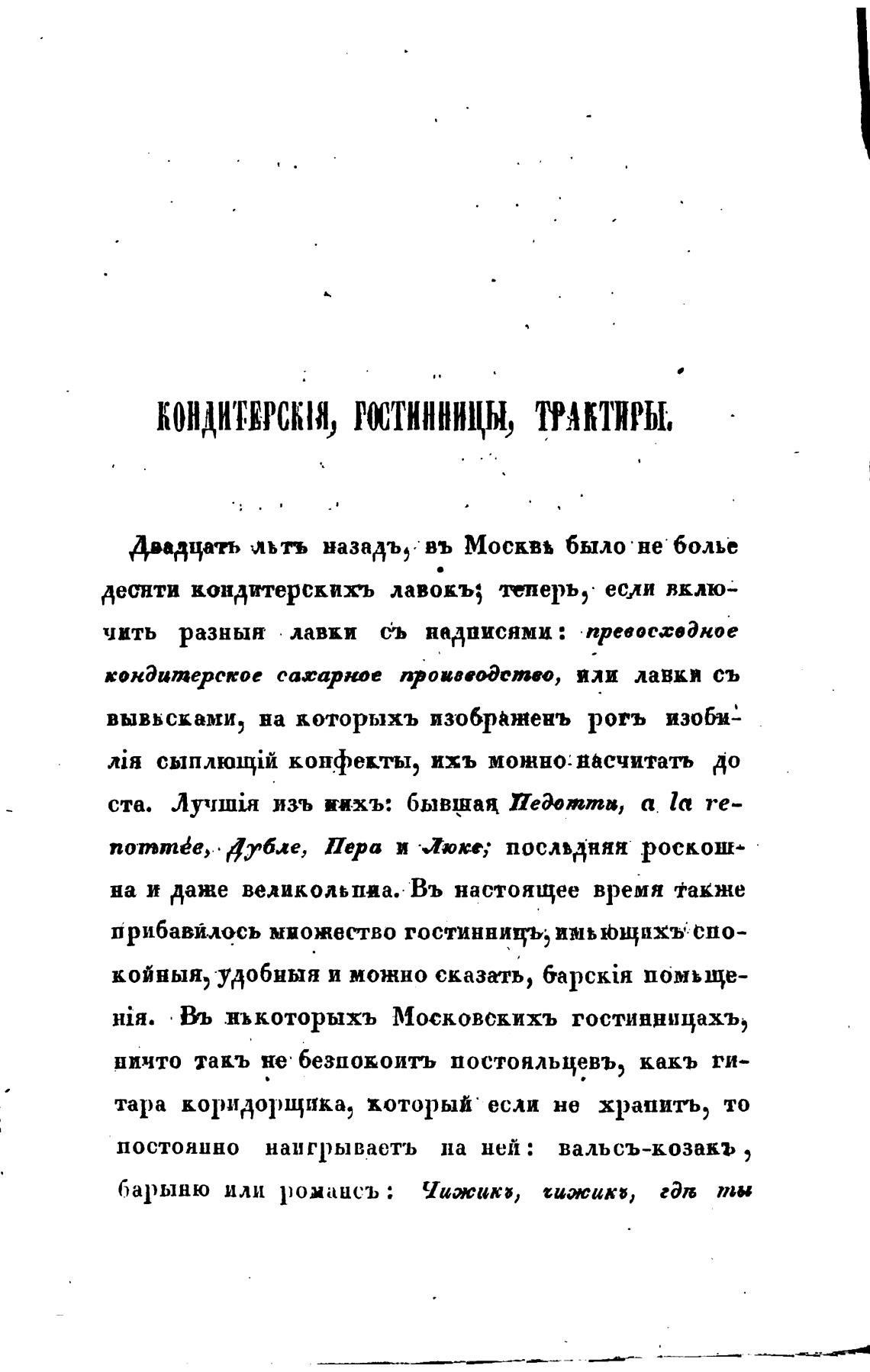 Hia. окоторыхъ Московскихъ гостиннидахъ,
