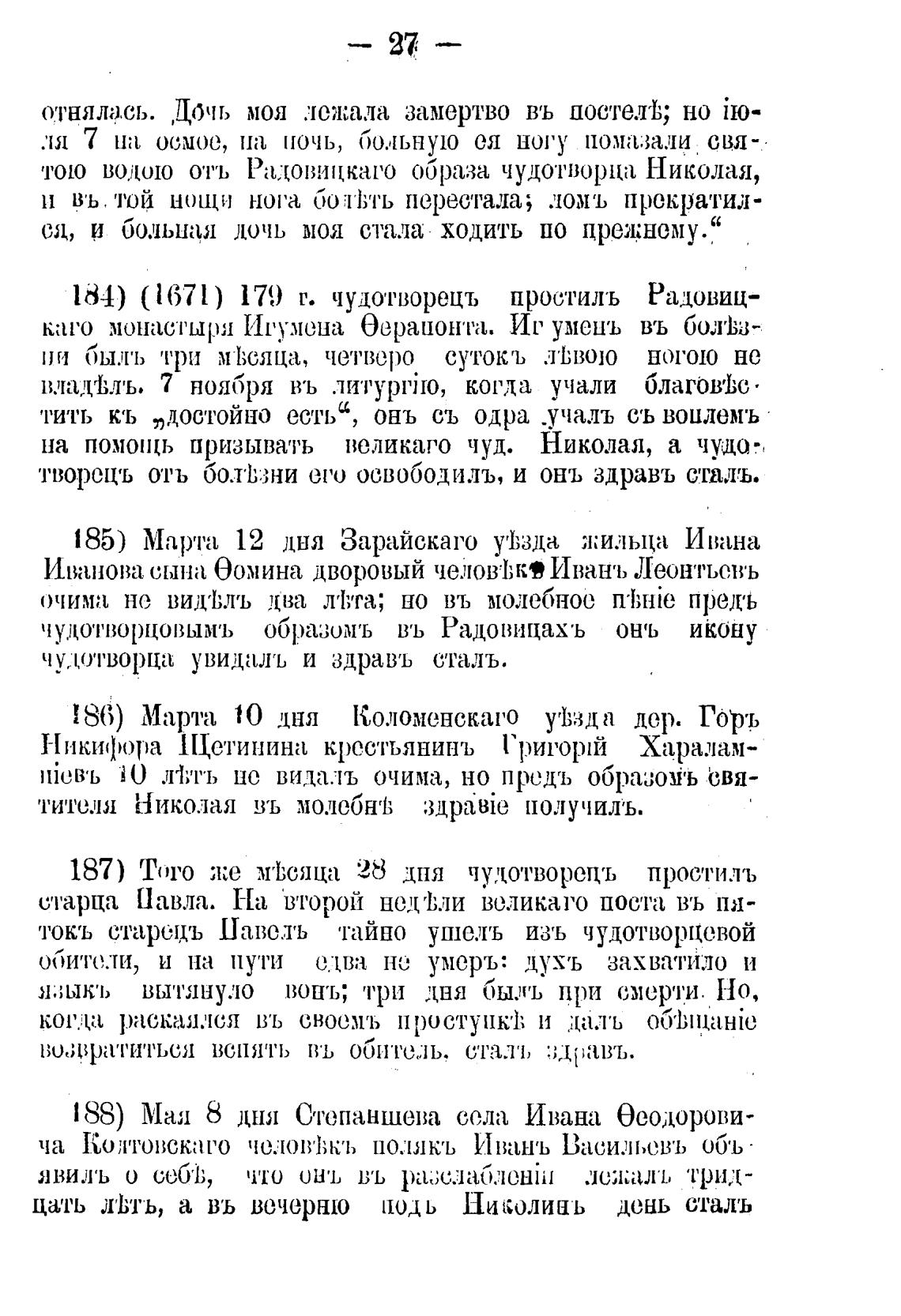 184) (1671) 179 г. чудотворецъ прос•гилъ Радовиц-