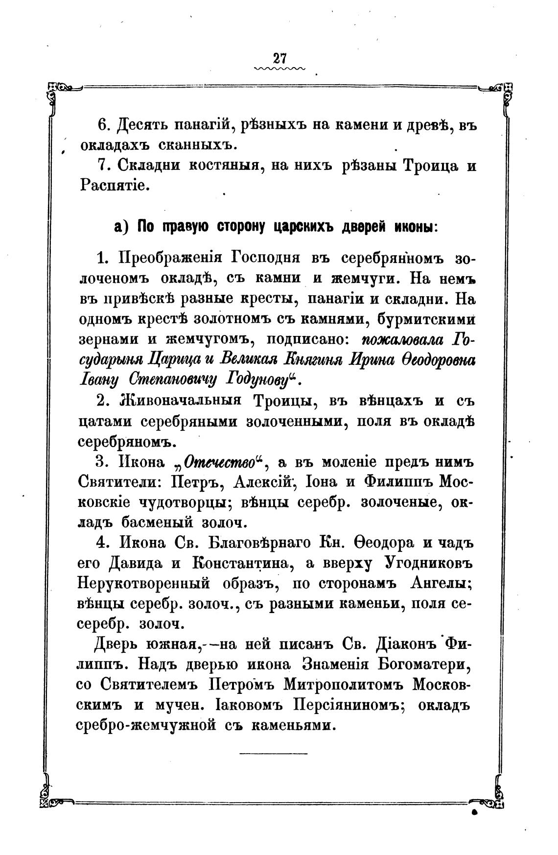 а) По правую сторону царскихъ дверей иконы: