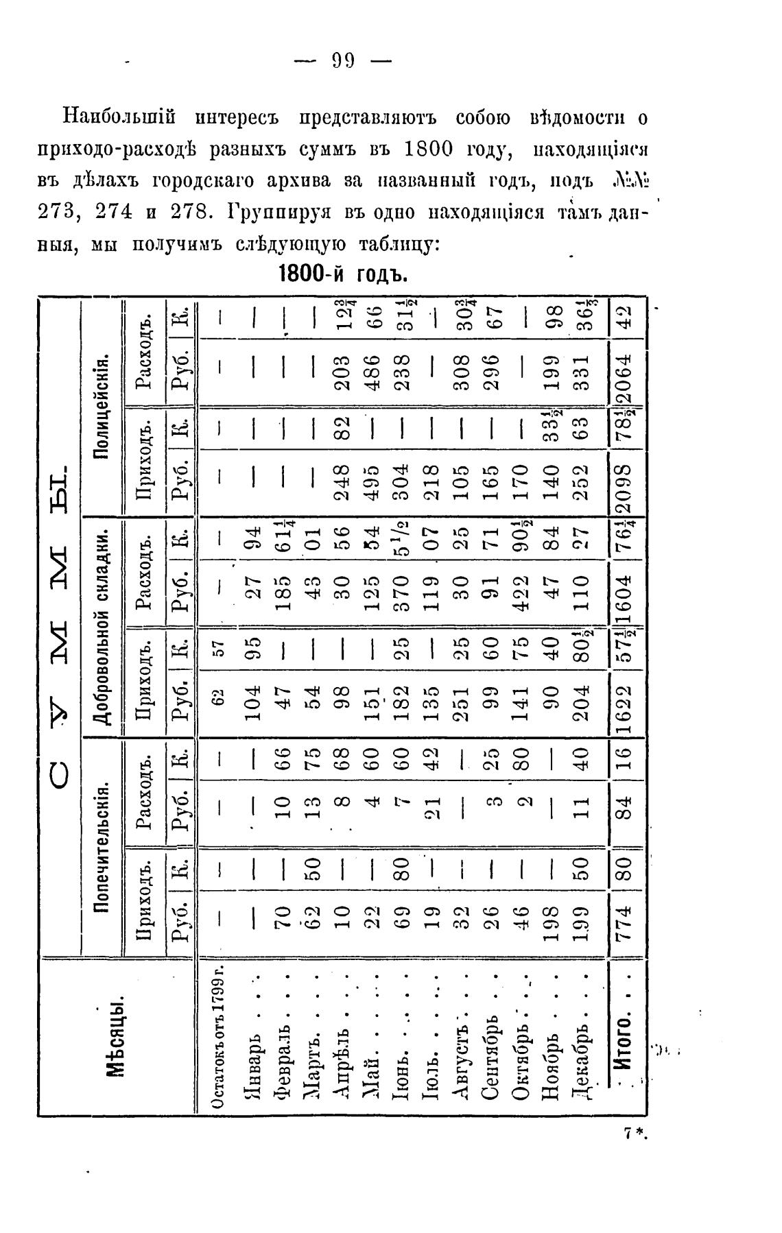 приходо-расход•ь разныхъ суммъ въ 1800 году, на.ходян$яся