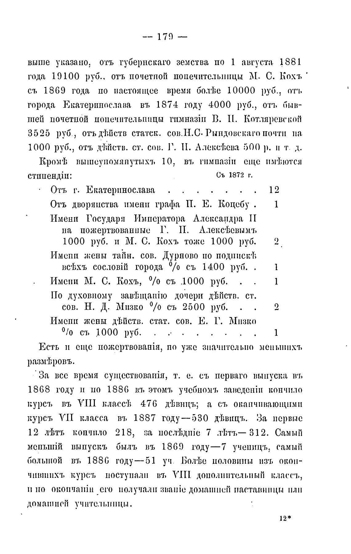 курсъ VII класса въ 1887 году —530 Д'ђВИЦЪ. За первые
