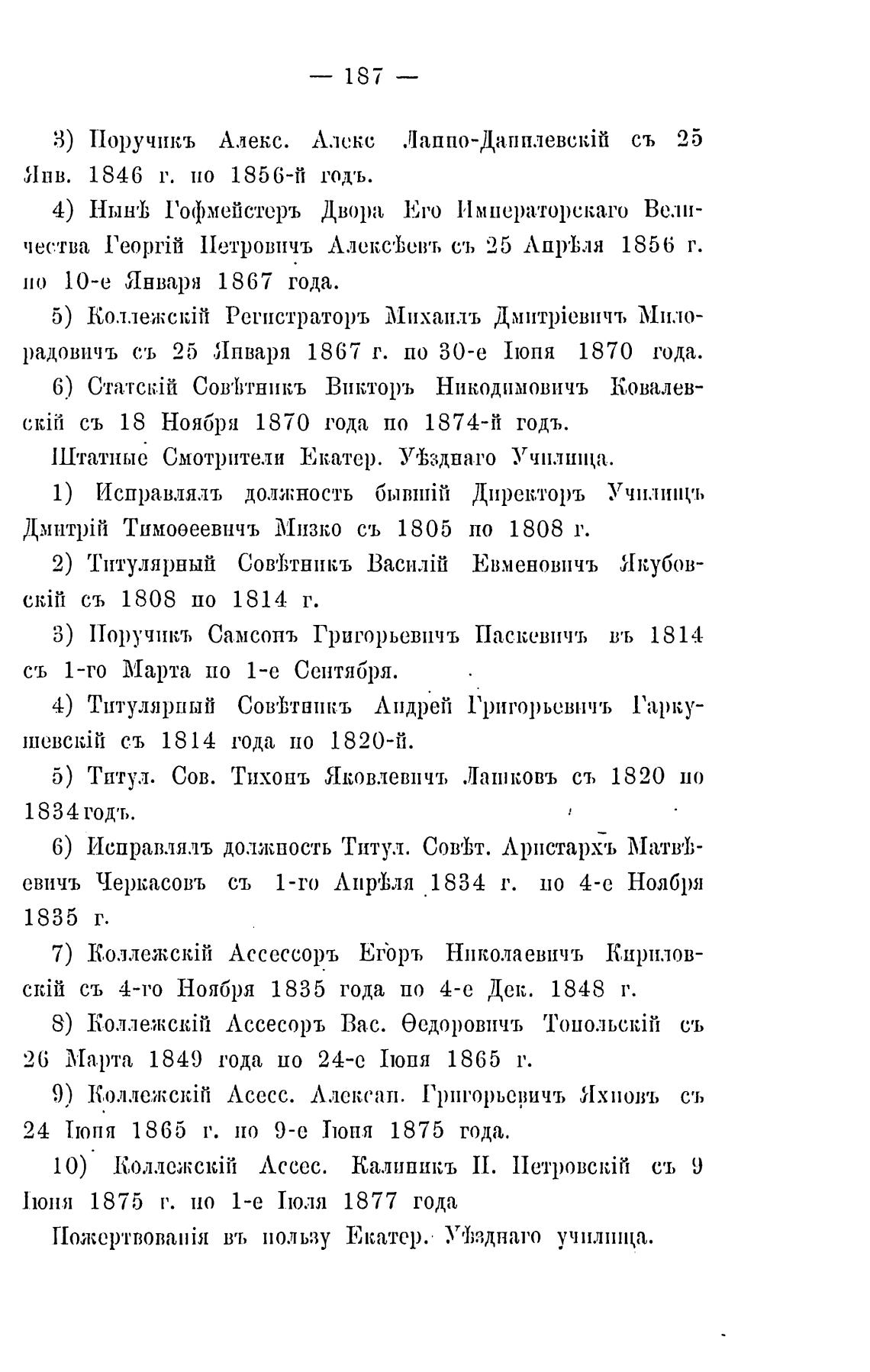 1Птатные Смотрители Екатер. Уг1;зднаго Учп.лшца.