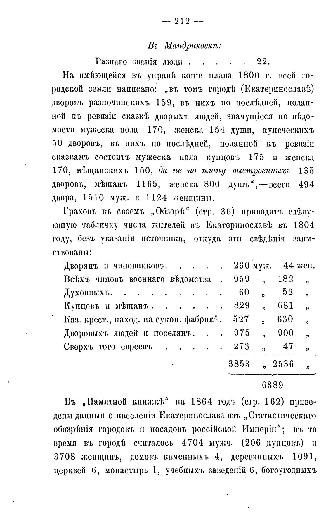 •:депш данпыя о Екатеринослава изъ „Статистическаго