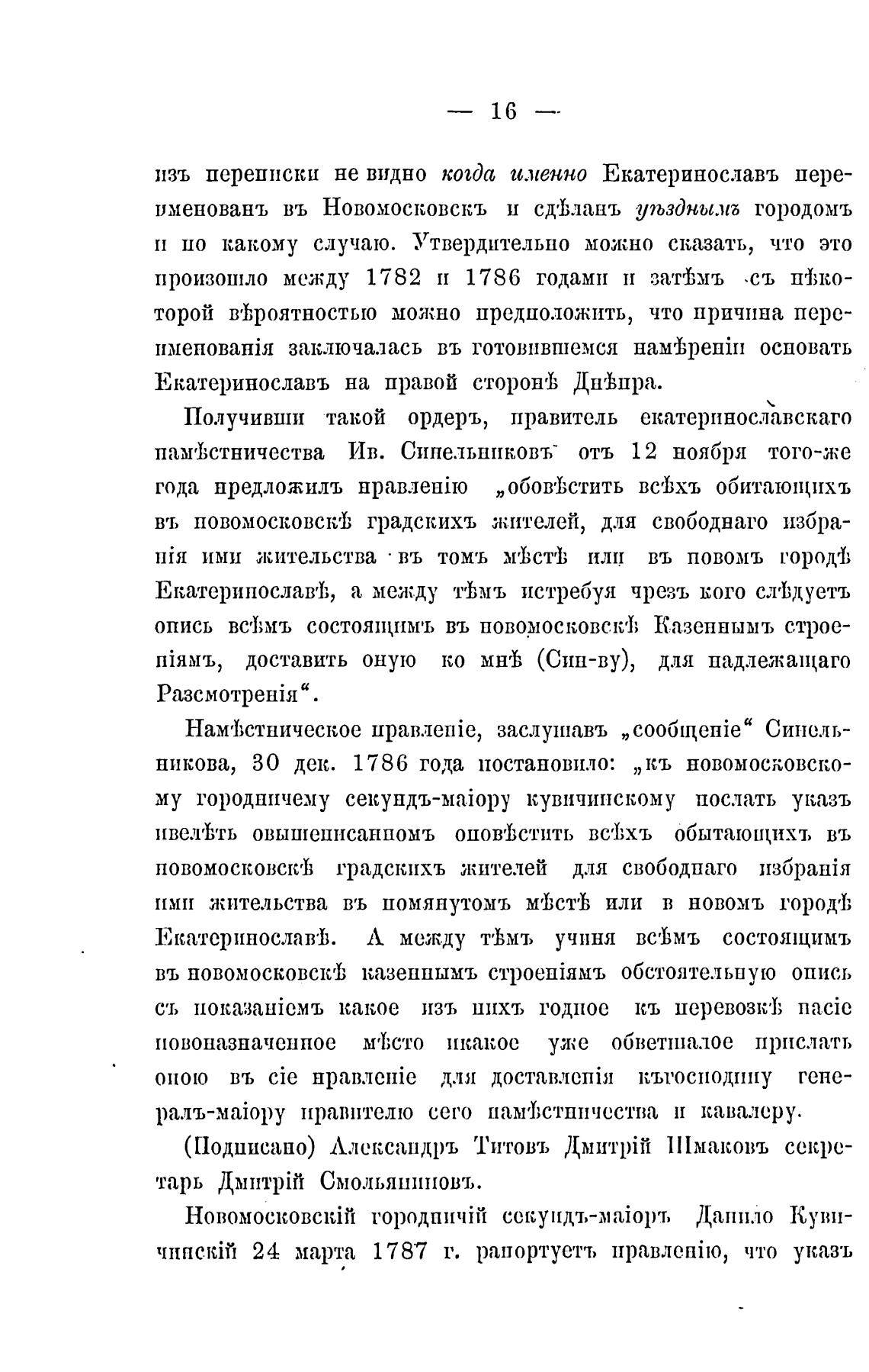 никова, 30 дек. 1786 года постановило: „кь новомосковско-