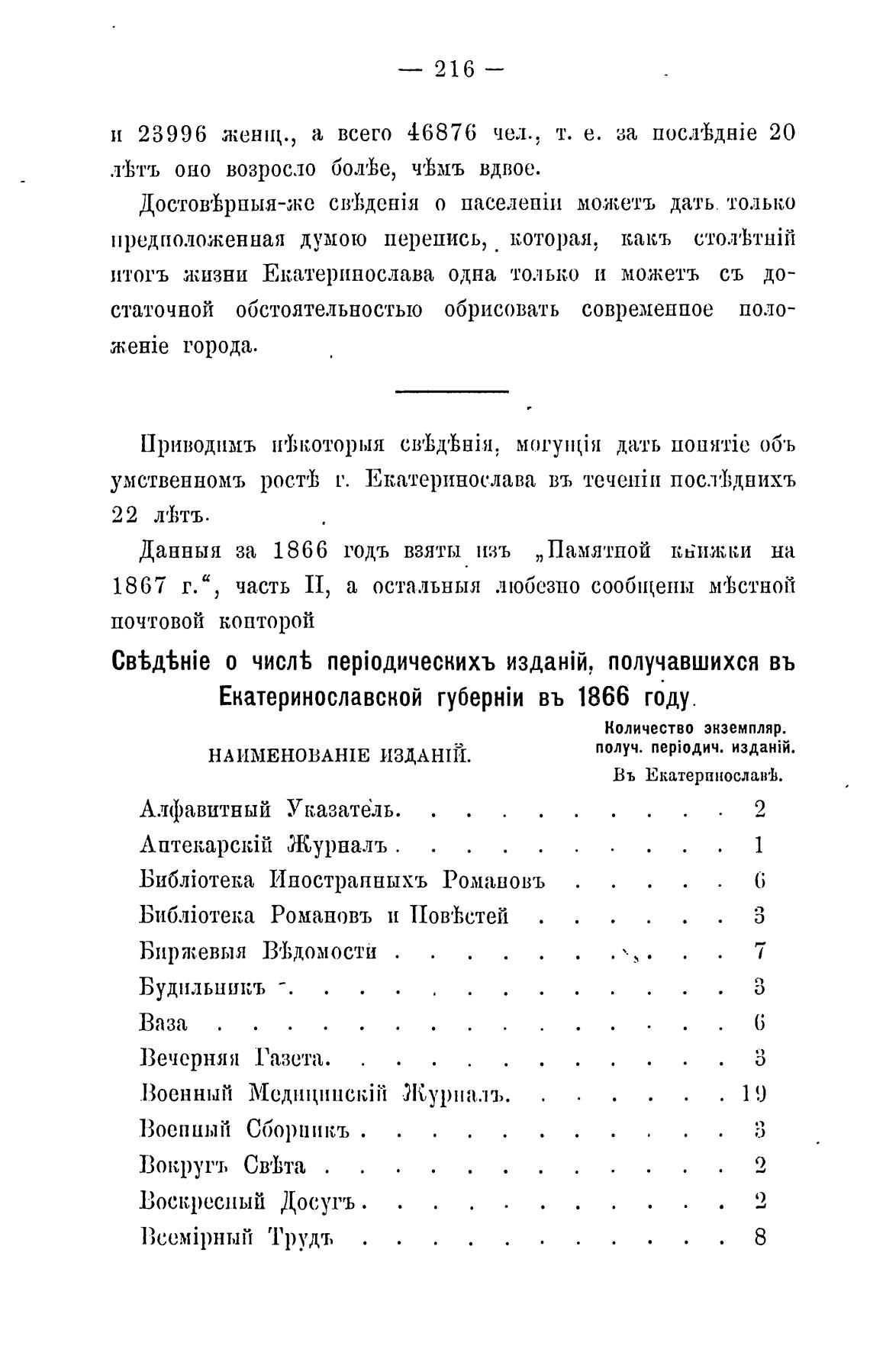 Данныя за 1866 годъ взяты изъ „Памятпой на