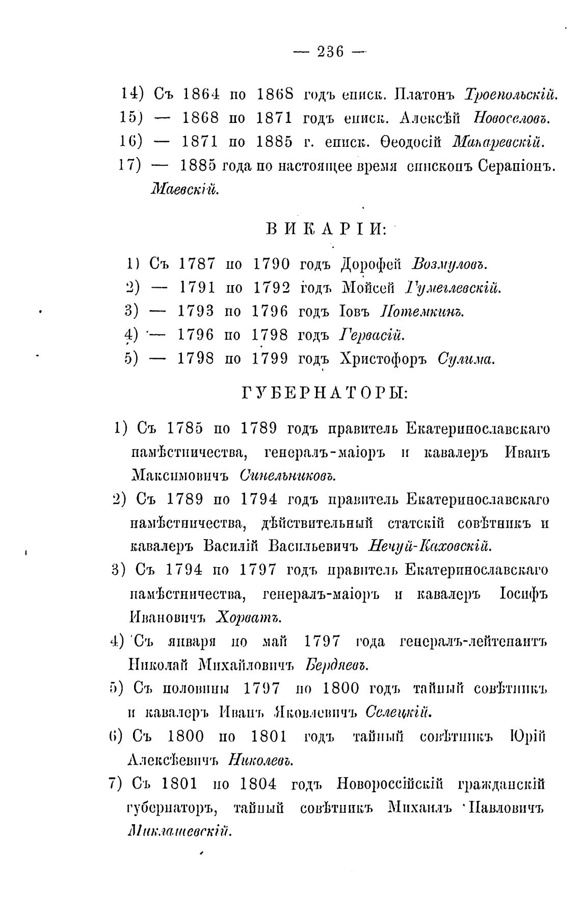 1) Съ 1785 по 1789 годъ правитель Екатерипославскаго