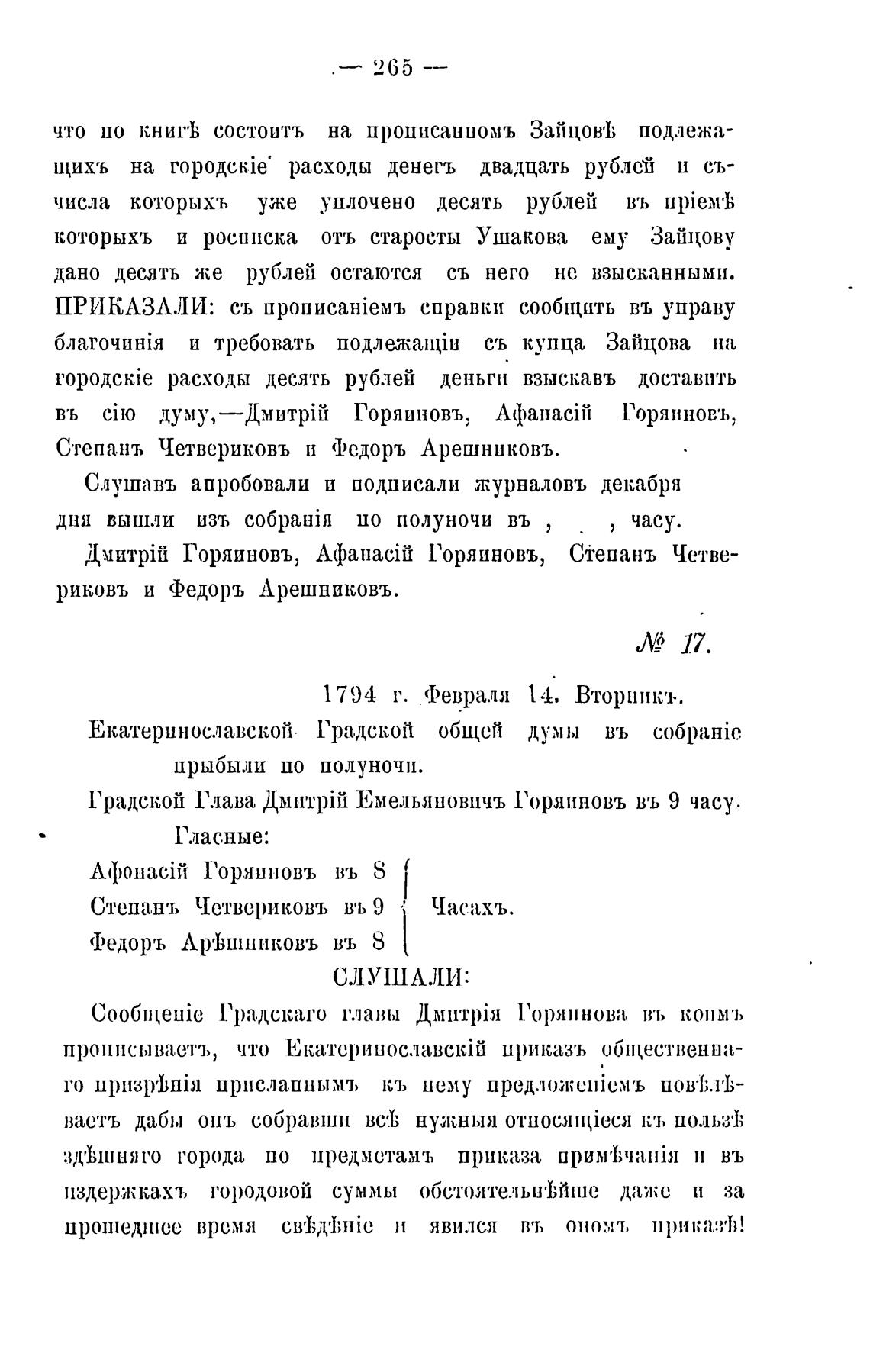 Градской Глава Емельяновичъ Горяиновъ въ 9 часу.