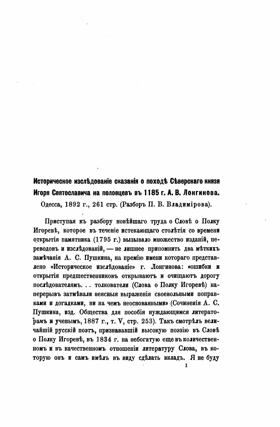 Приступая кь ра.збору нов%йшаго труда о Слов•Ь о Полку