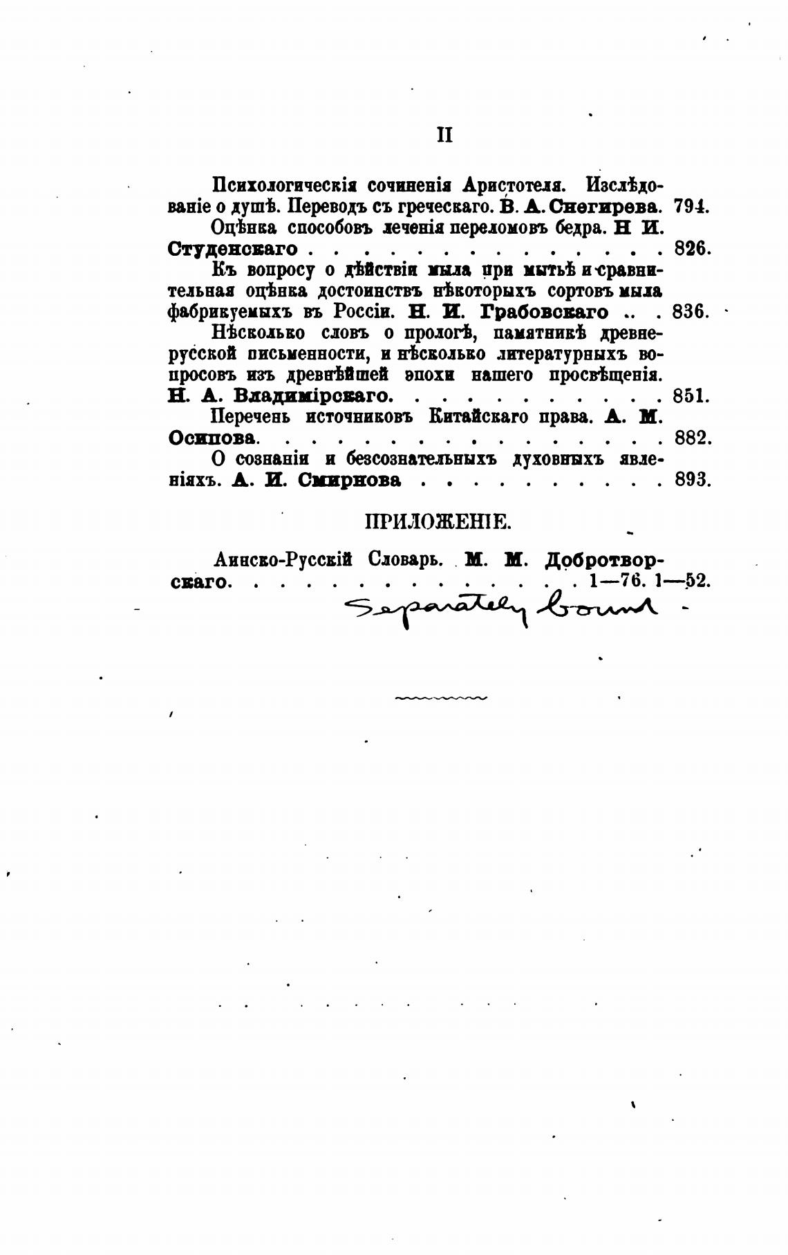 B8Hie о душ±. Переводъ съ гречесваго. В. А. Снегиревв. 794.