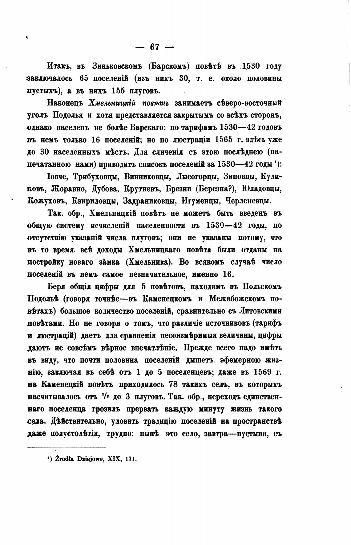 однако населень не бошЬе Барскаго: по тарифамъ 1530—42 годовъ