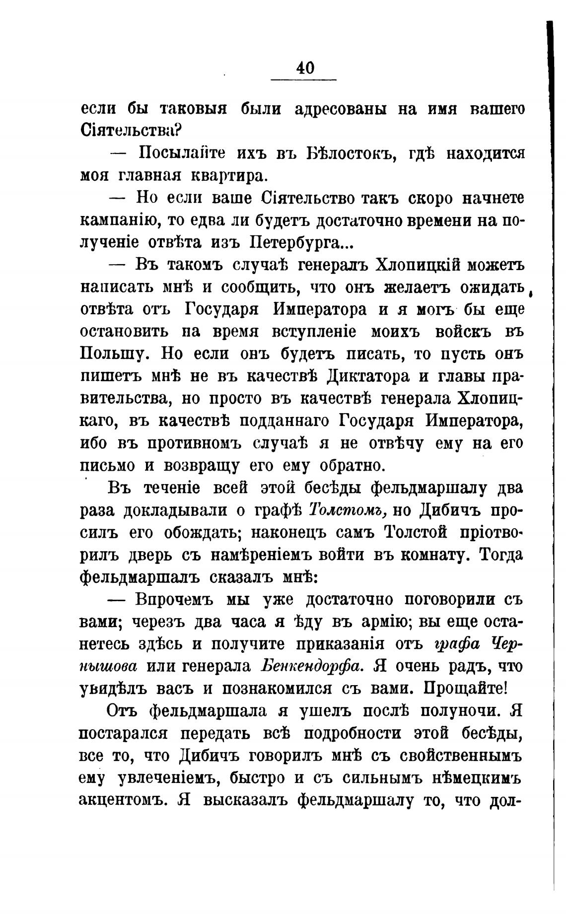 Отъ фельдмаршала я ушелъ послгћ полуночи. Я
