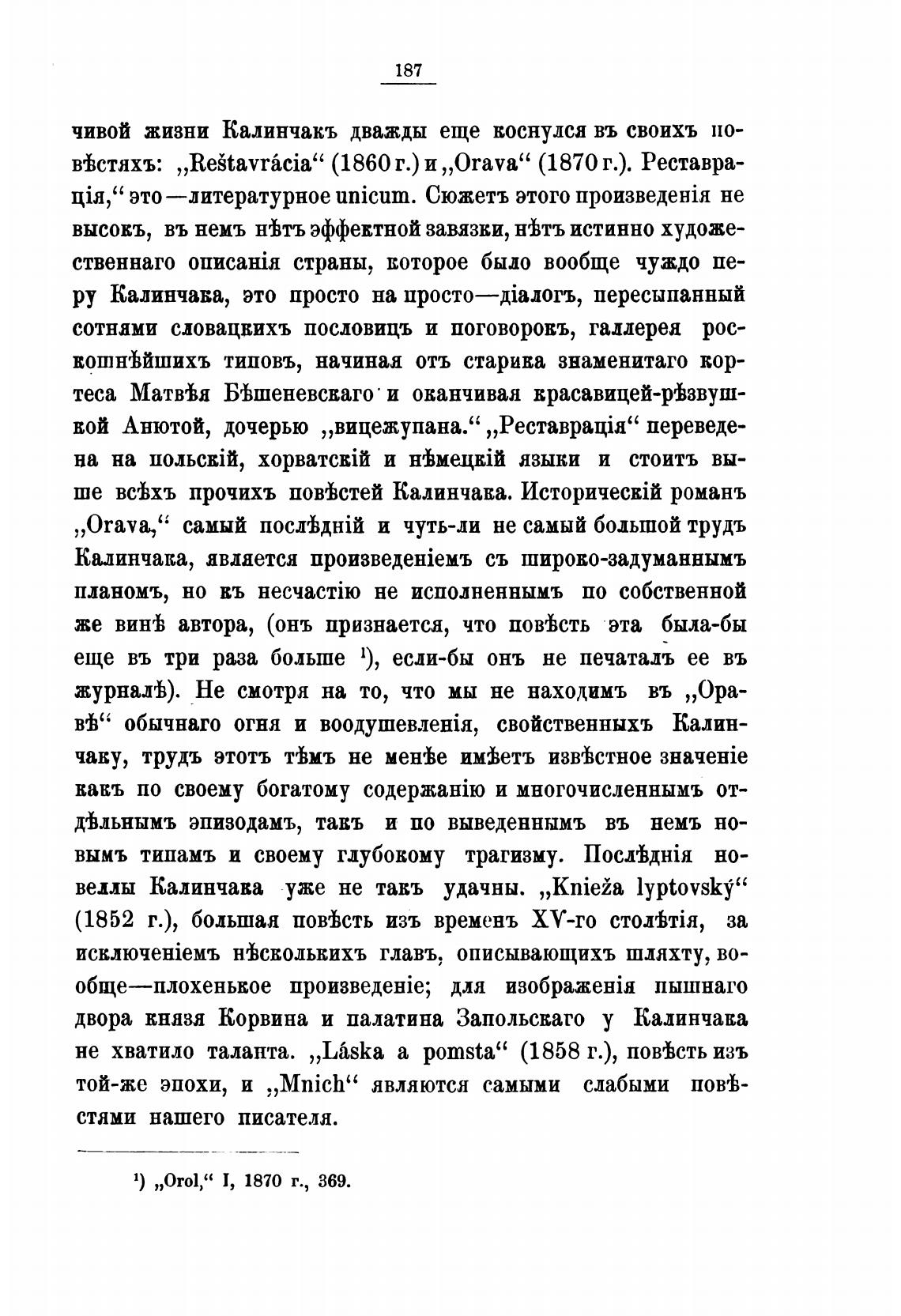 вТстяхъ: „Re{tavracia” (1860 г.) и „Orava“ (1870 г.). Реставра-