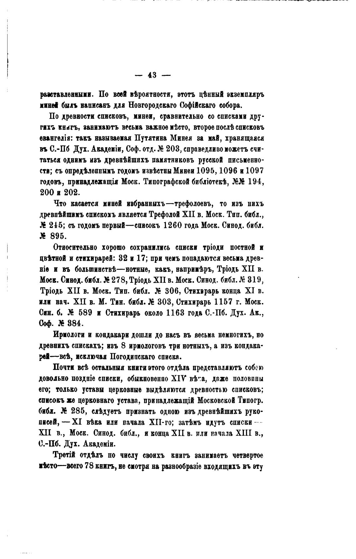 его; только уставы церковные выдјляются древностью списковъ;