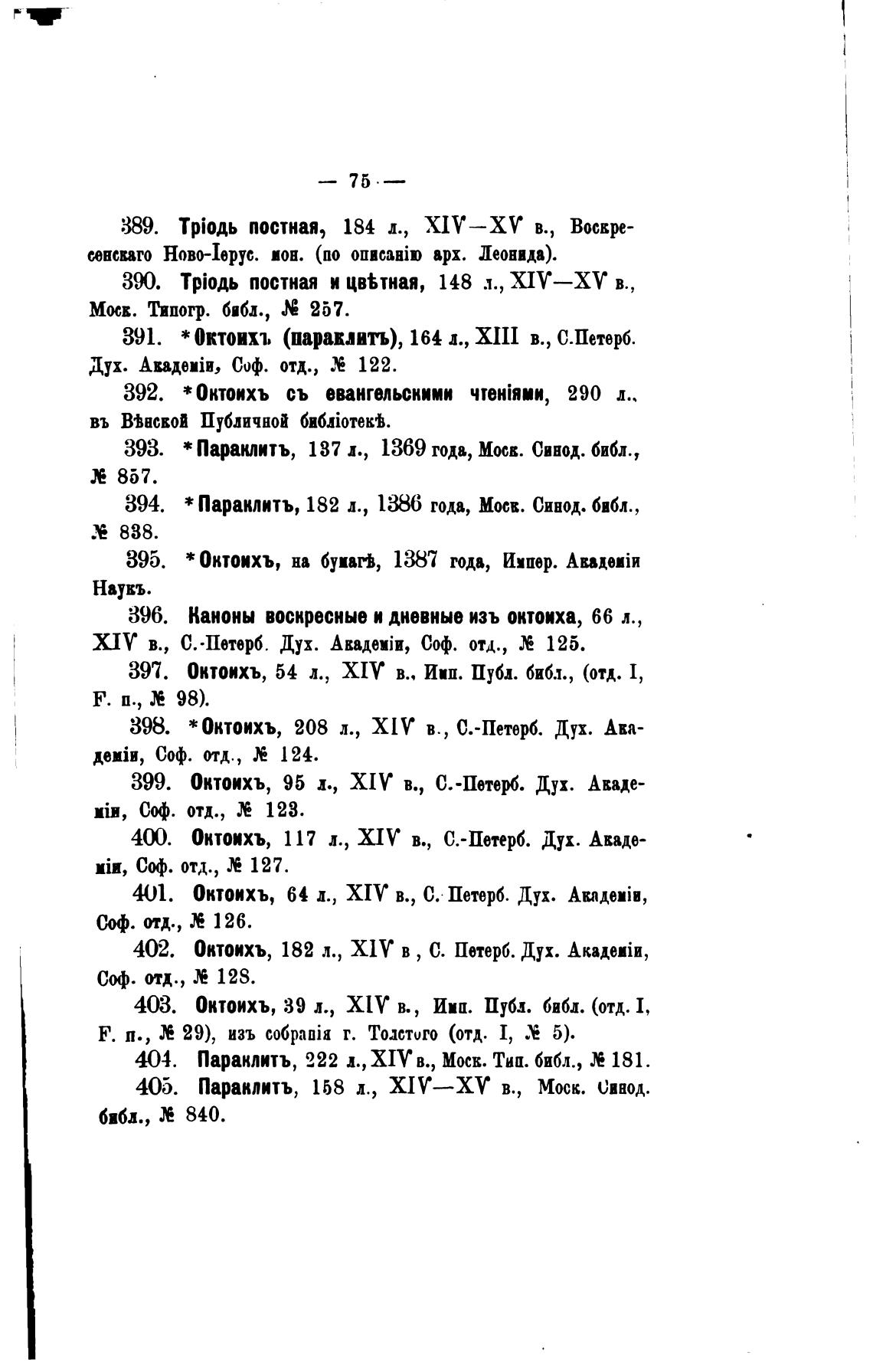 404. Параклитъ, 222 д., XIV в., Моск. Тиц. библ., 181.