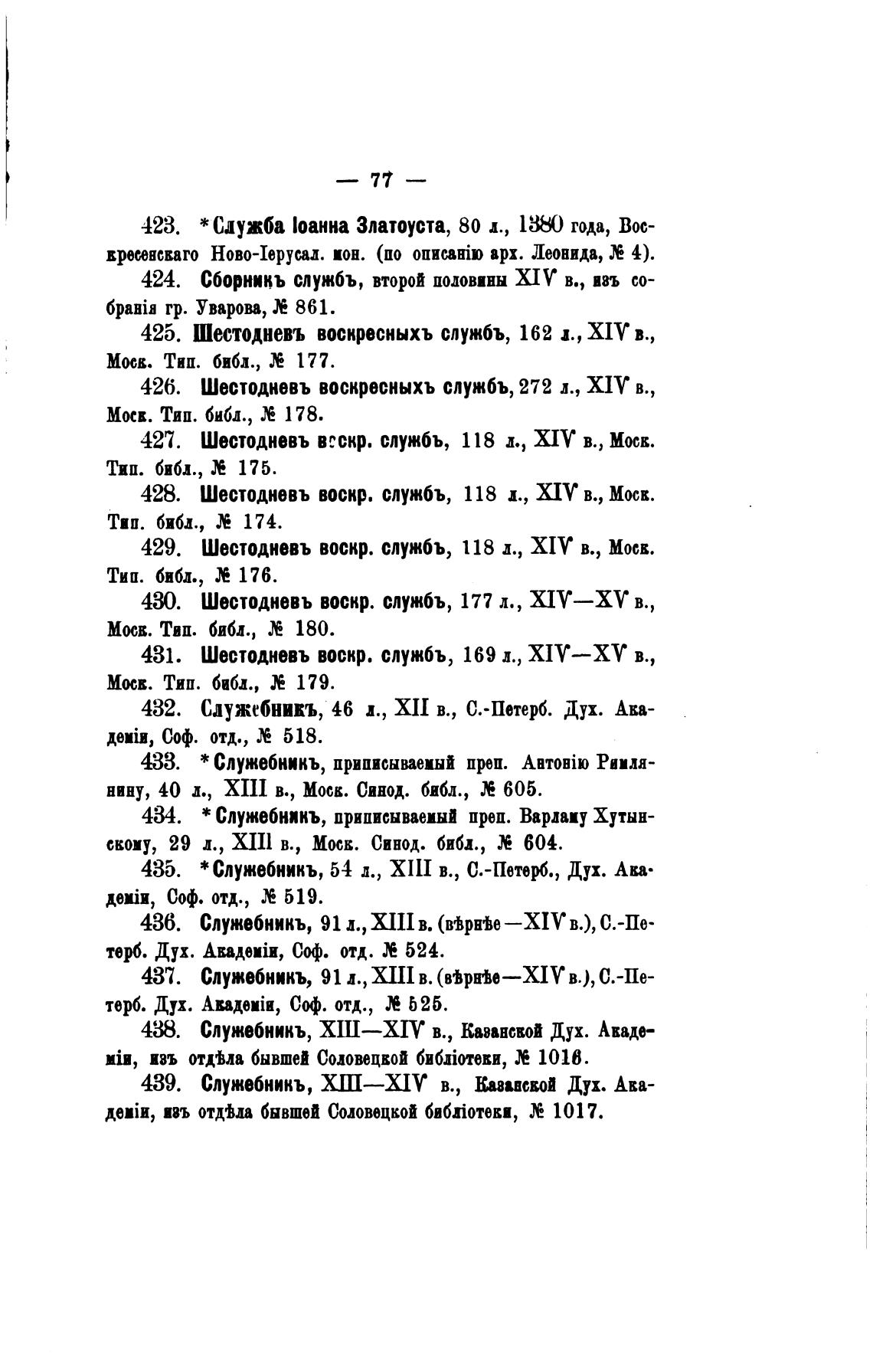 424. Сборннъ службъ, второй половины МУ в., ввъ со-