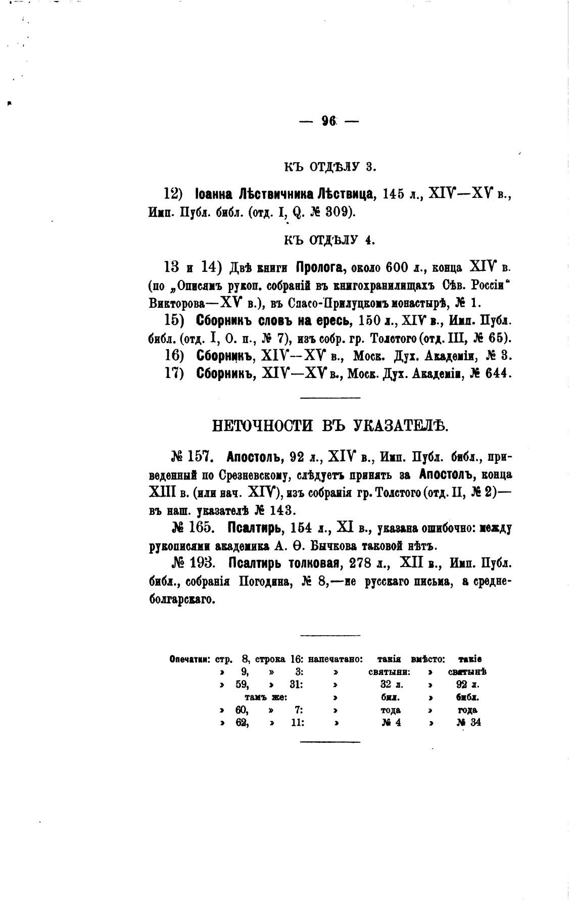 (цо „Описаиъ рукоп. c06paHiI въ внигохранилищахъ С±в. Росби"