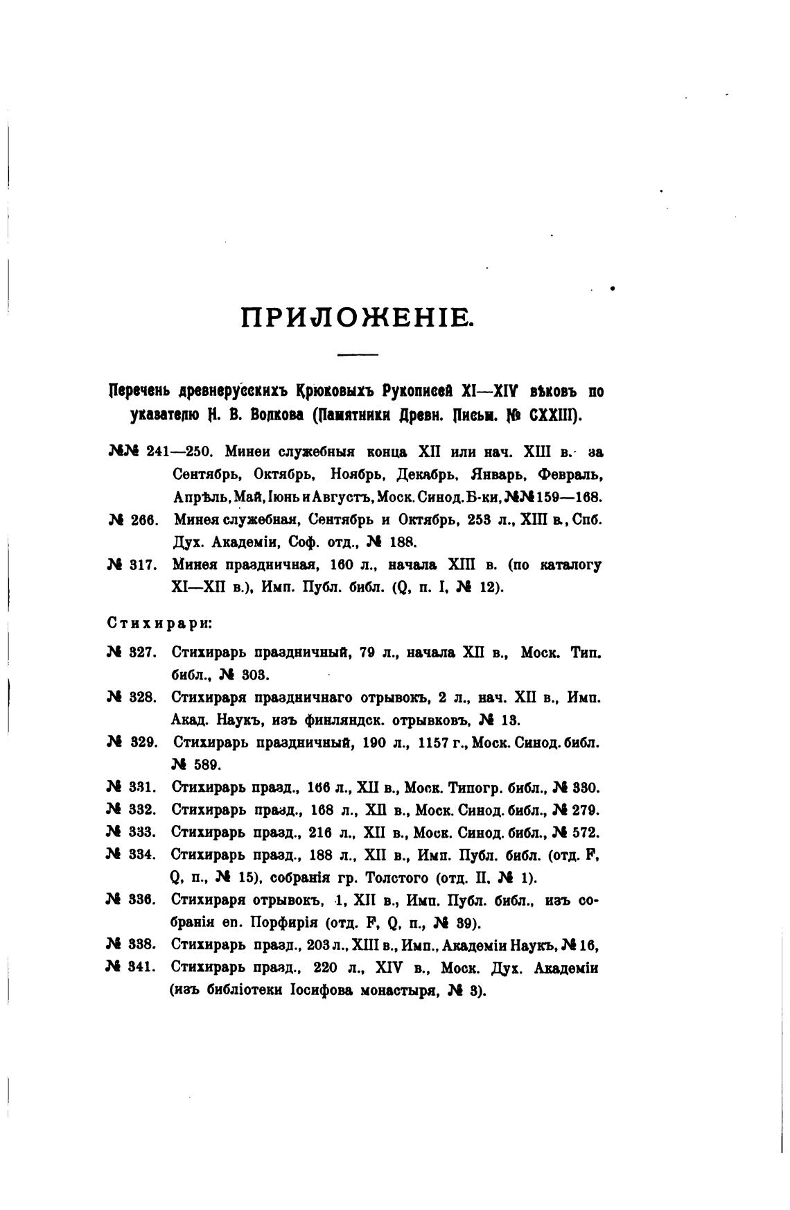Перчень древнеруеекихъ Крюковыхъ Рукописей XI—XIV ввковъ по