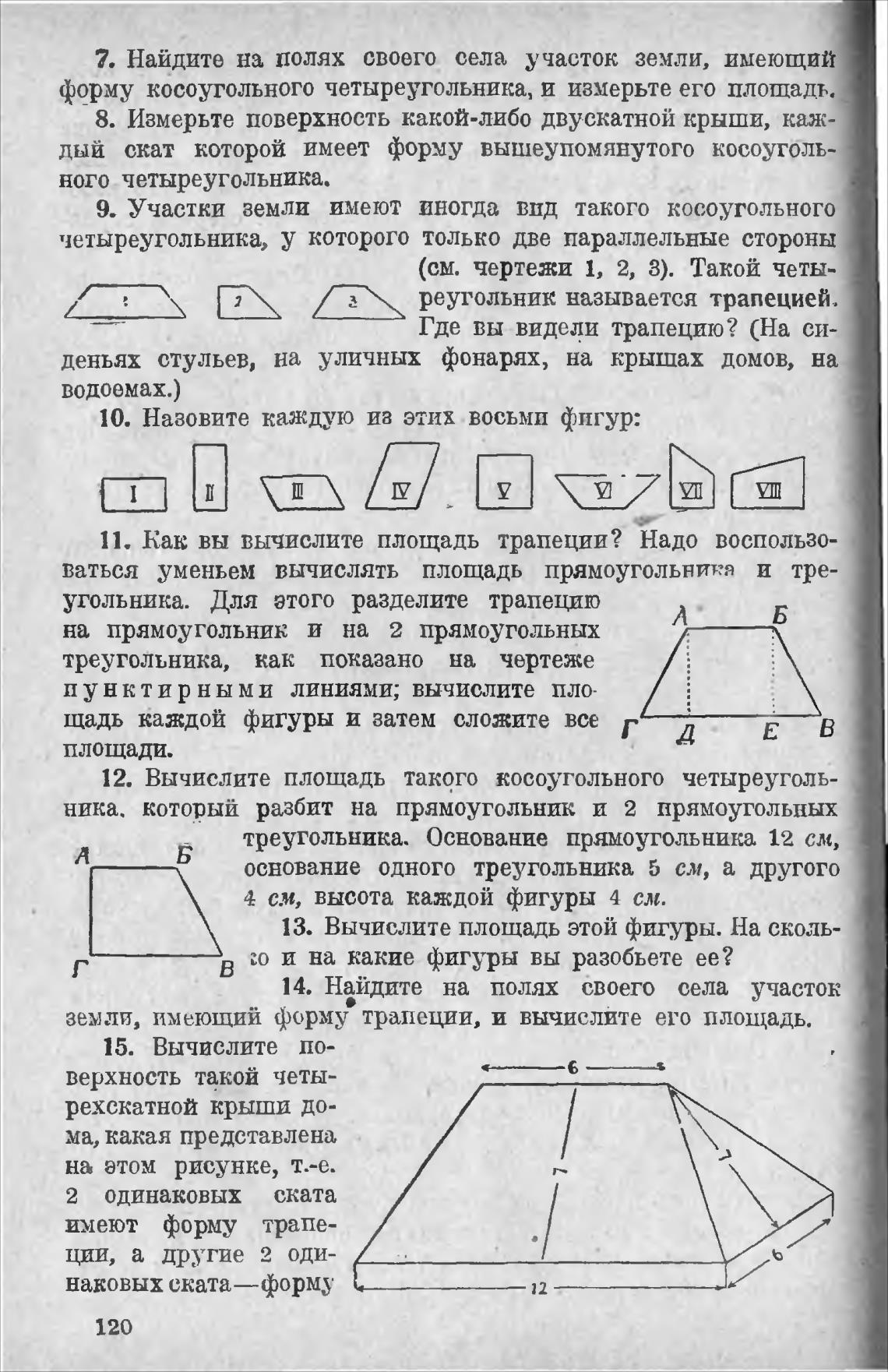 ваться уменьем вычислять площадь прямоугольника и тре-