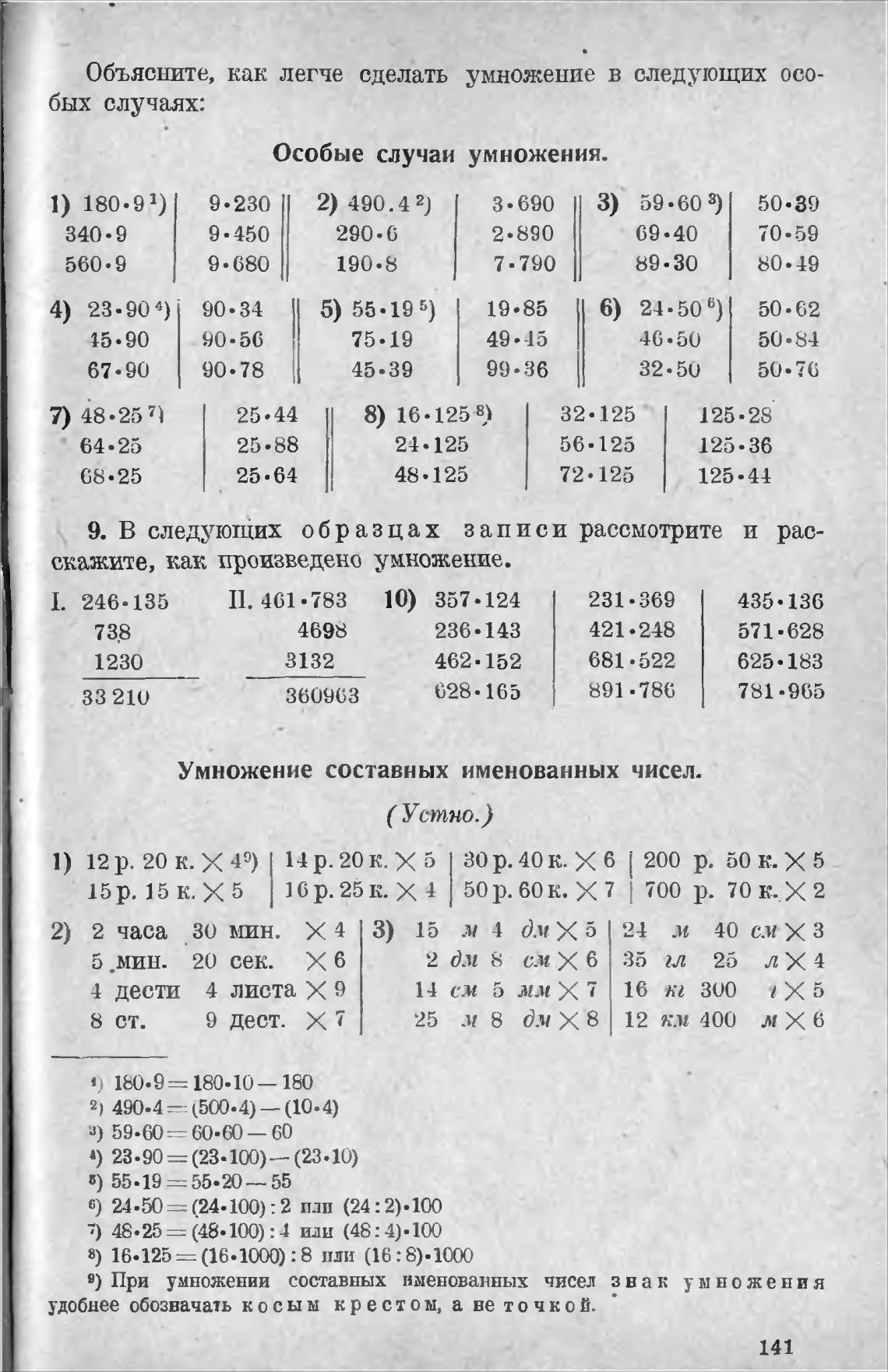 9) При умножении составных именованных чисел знак ум но жени я