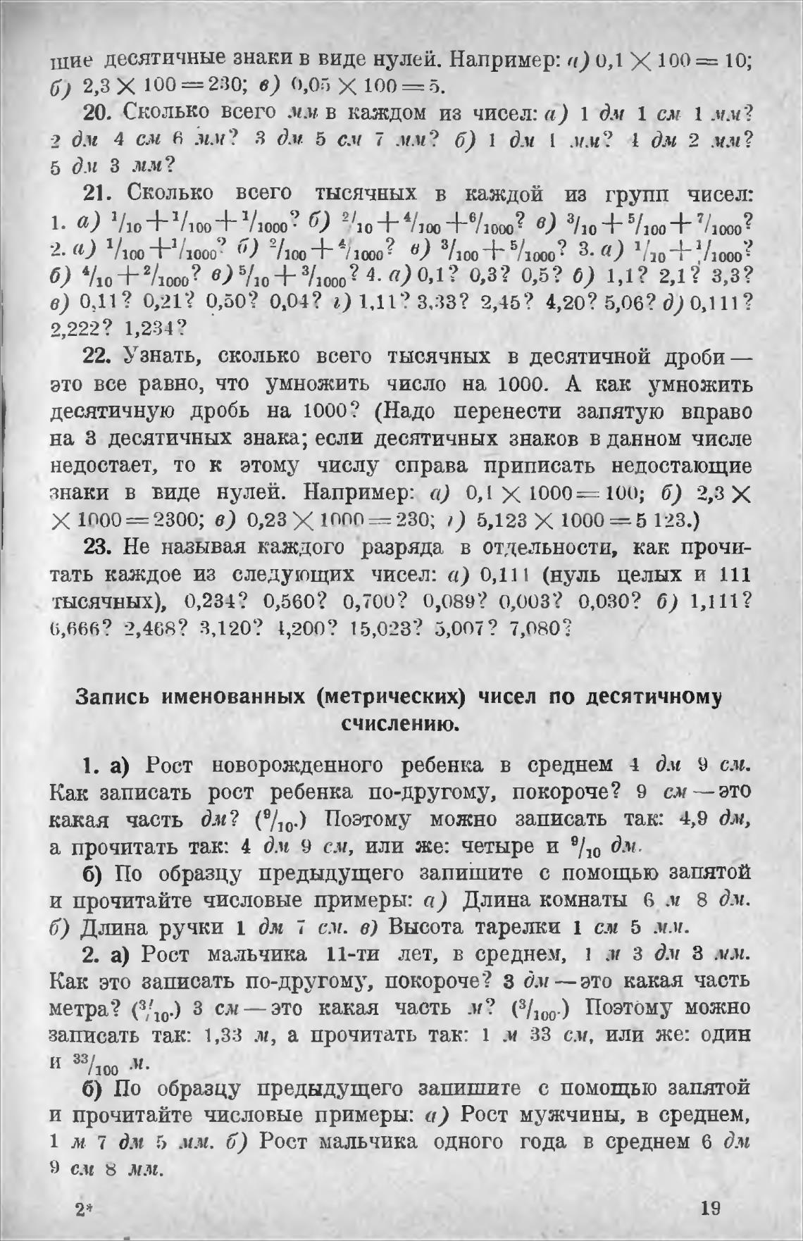 Запись именованных (метрических) чисел по десятичному