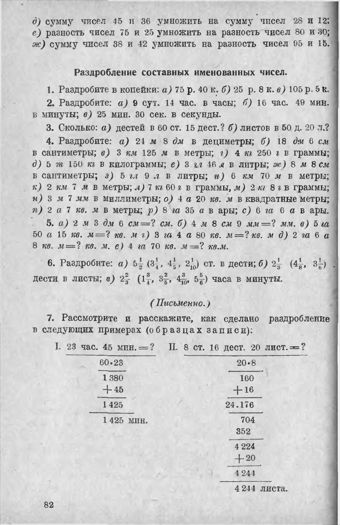 дести в листы; в) 2?- 3}, 446, 5{-) часа в минуты.