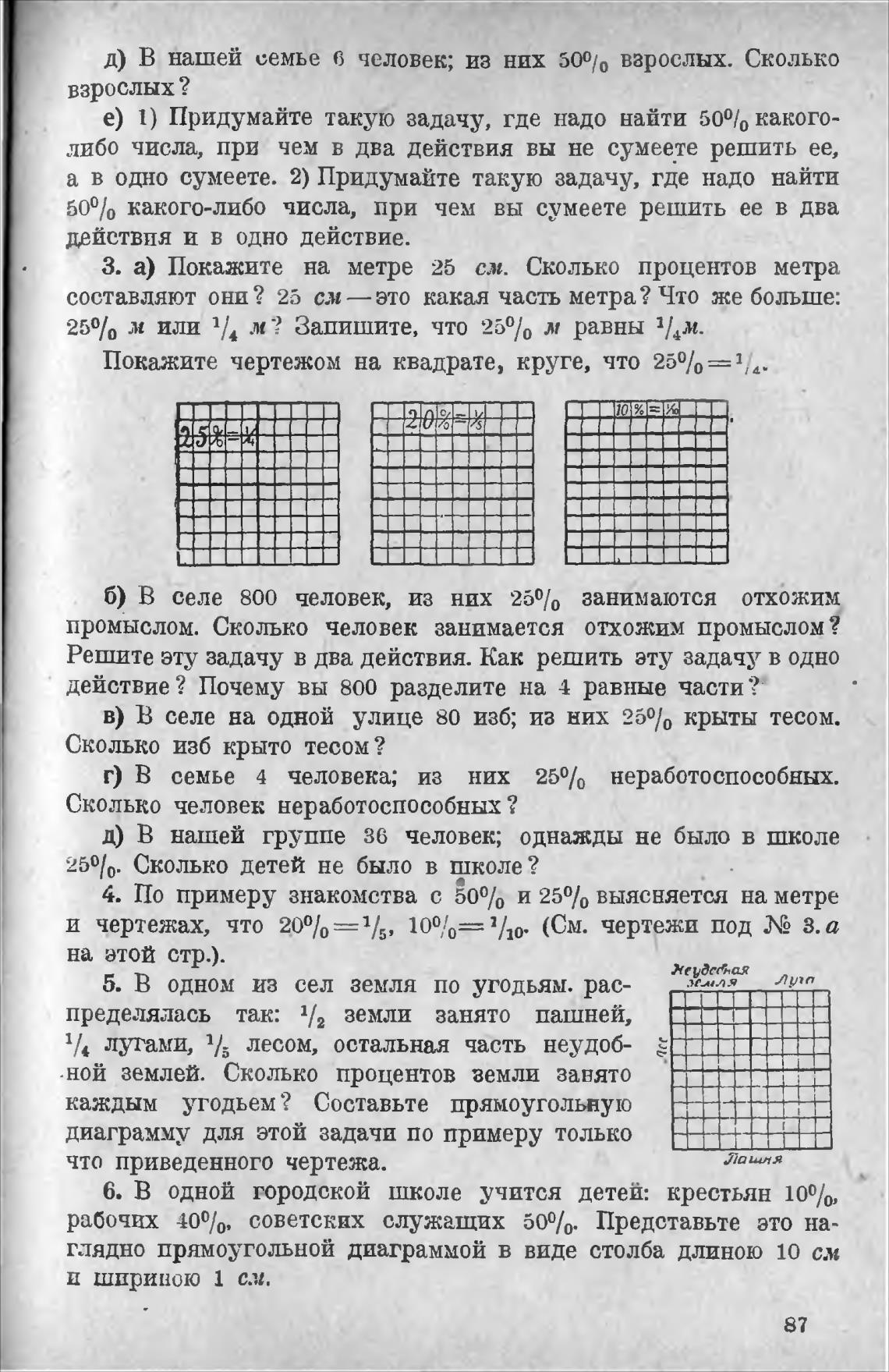 д) В нашей семье 6 человек; из них 500/0 взрослых. Сколько