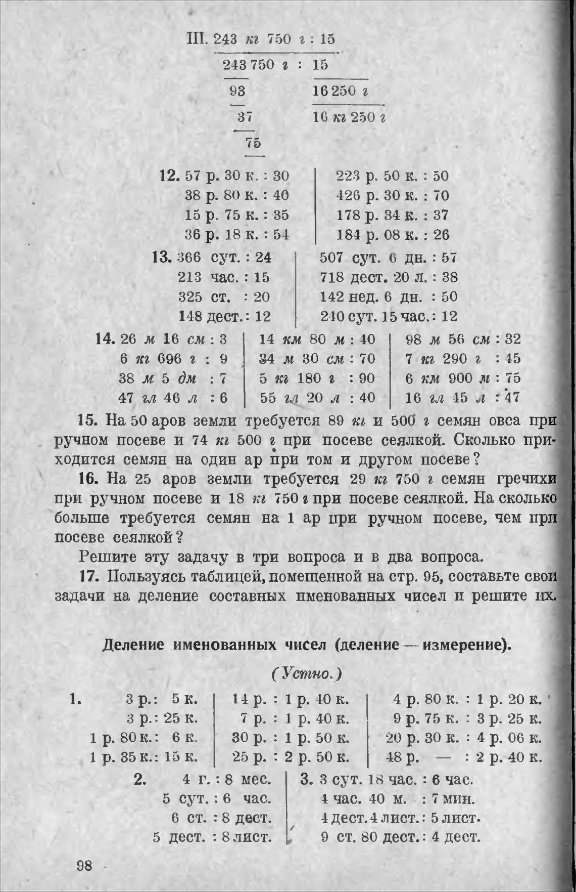 Деление именованных чисел (деление — измерение).