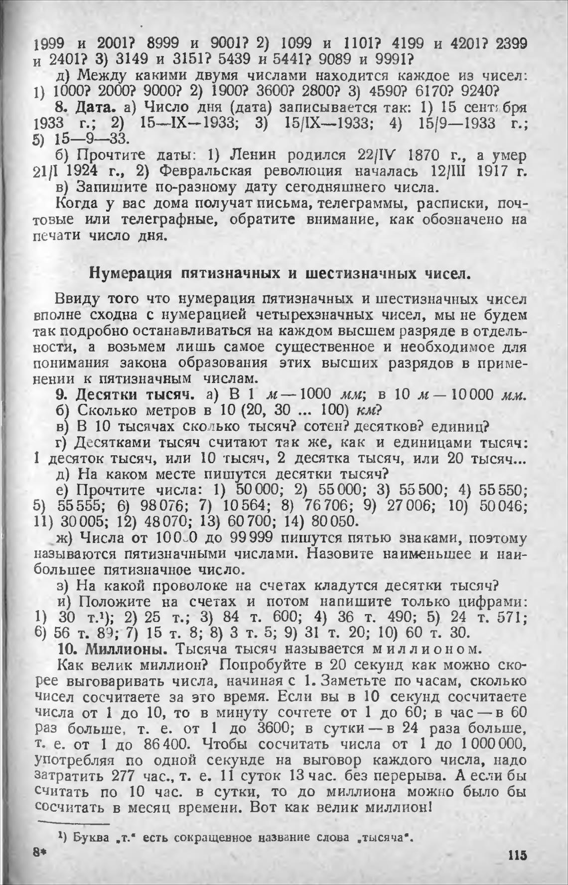 10. Миллионы. Тысяча тысяч называется миллионом.