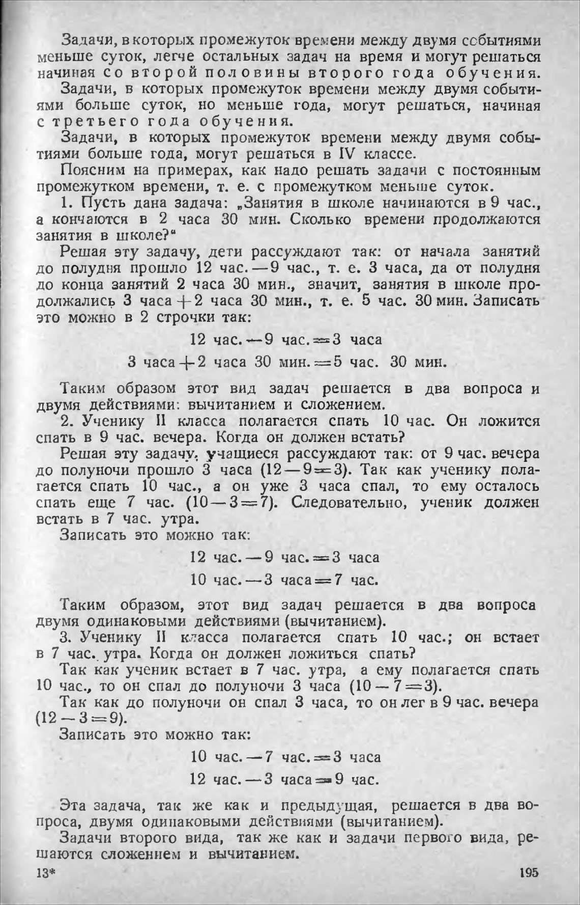 Решая эту задачу учащиеся рассуждают так: от 9 час. вечера
