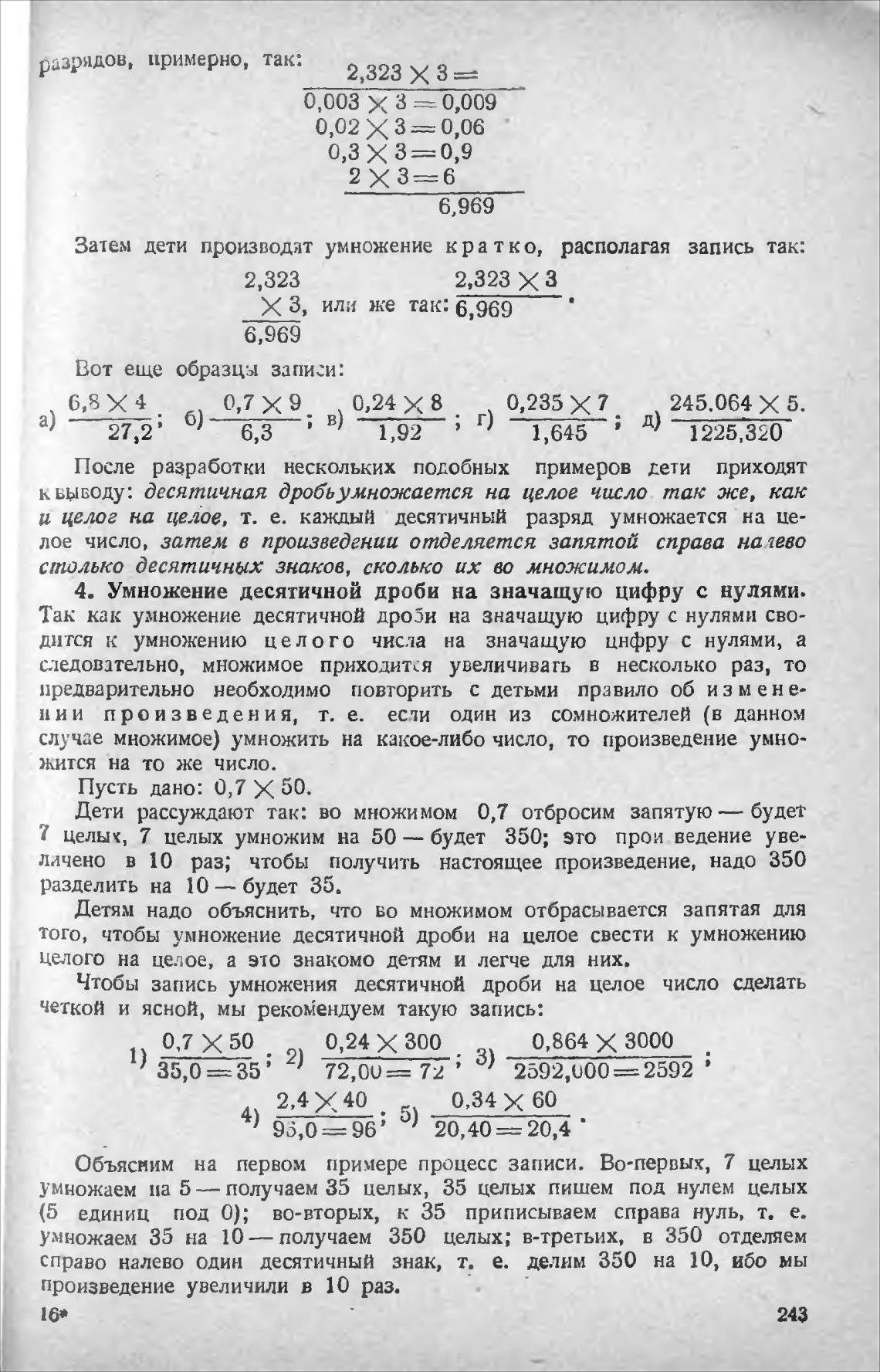 того, чтобы умножение десятичной дроби на целое свести к умножению