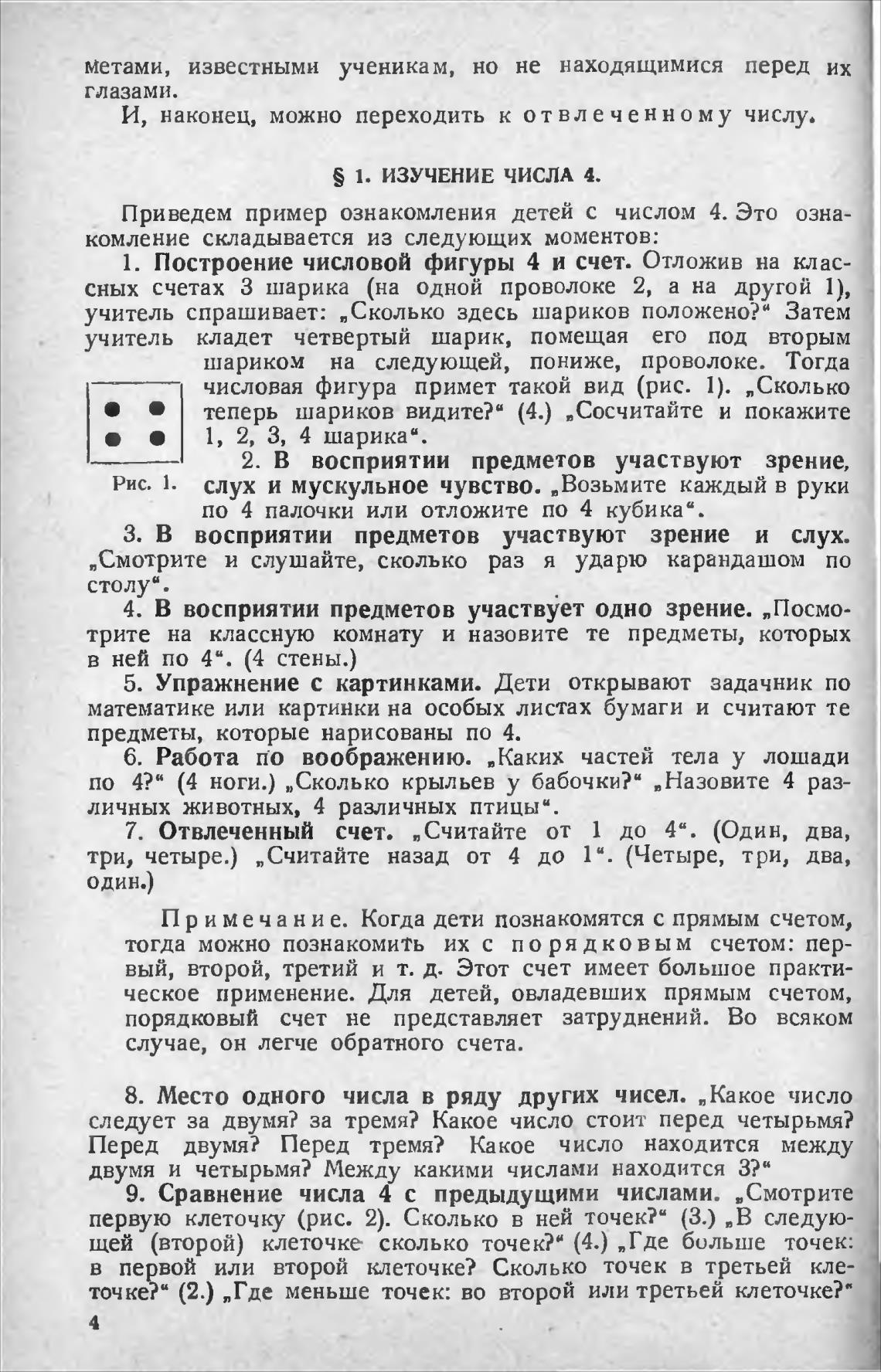 Приведем пример ознакомления детей с числом 4. Это озна-