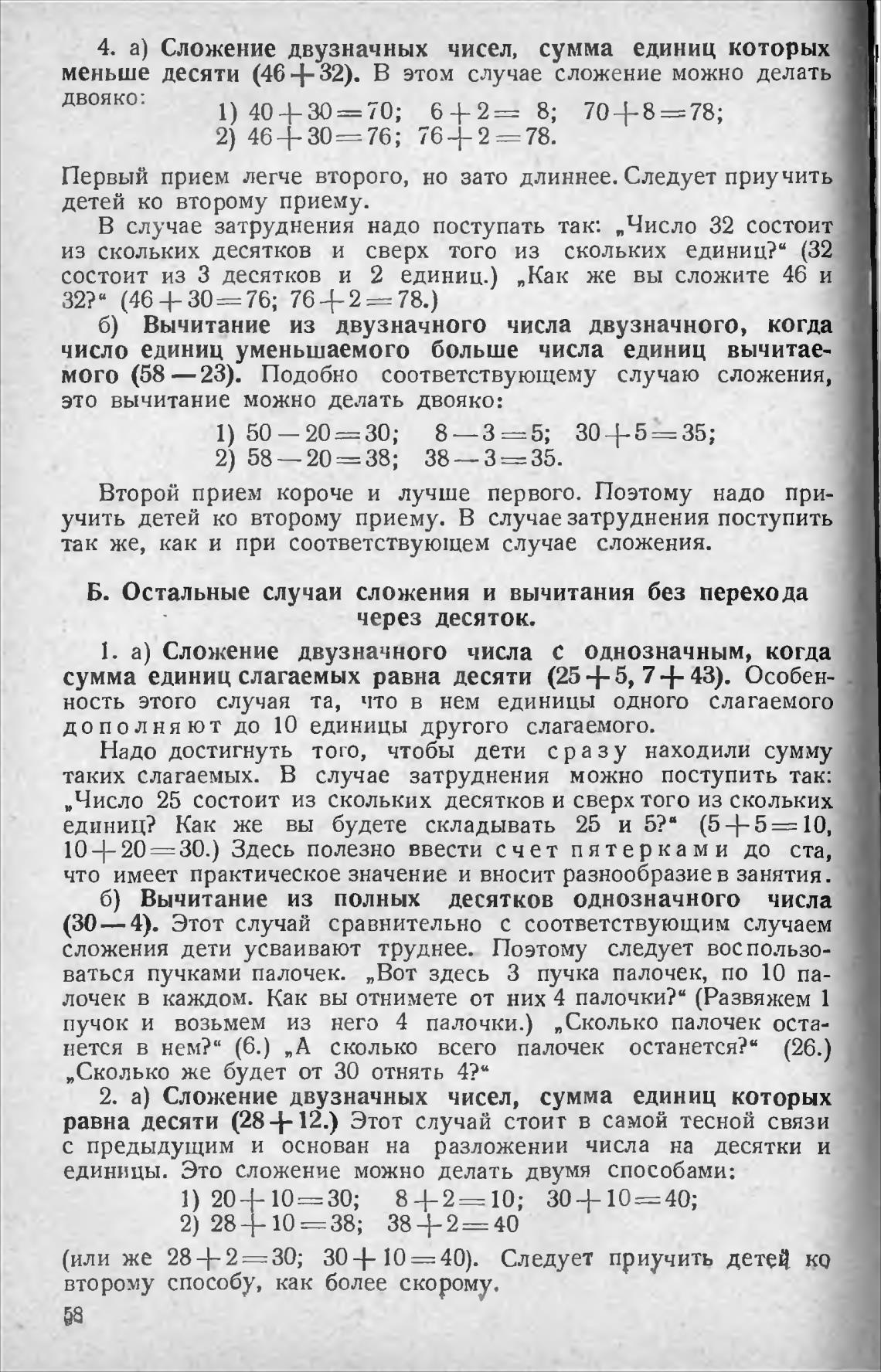 Б. Остальные случаи сложения и вычитания без перехода