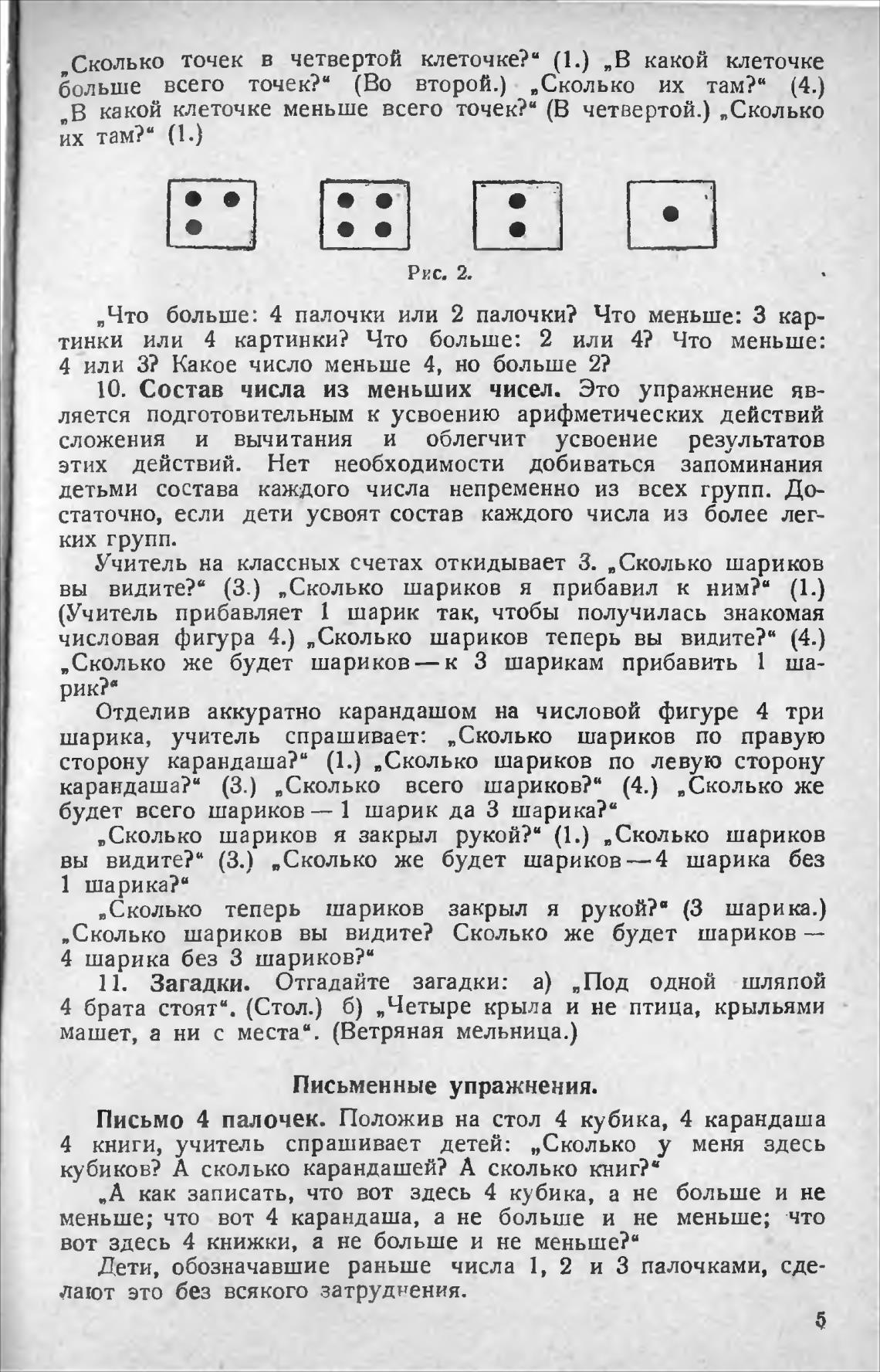 больше всего точек?“ (Во второй.) „Сколько их там?“ (4.)