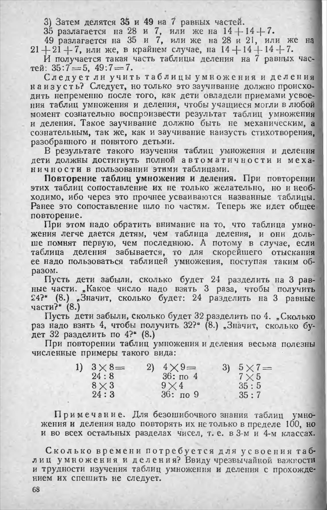 и деления. Такое заучивание должно быть не механическим, а