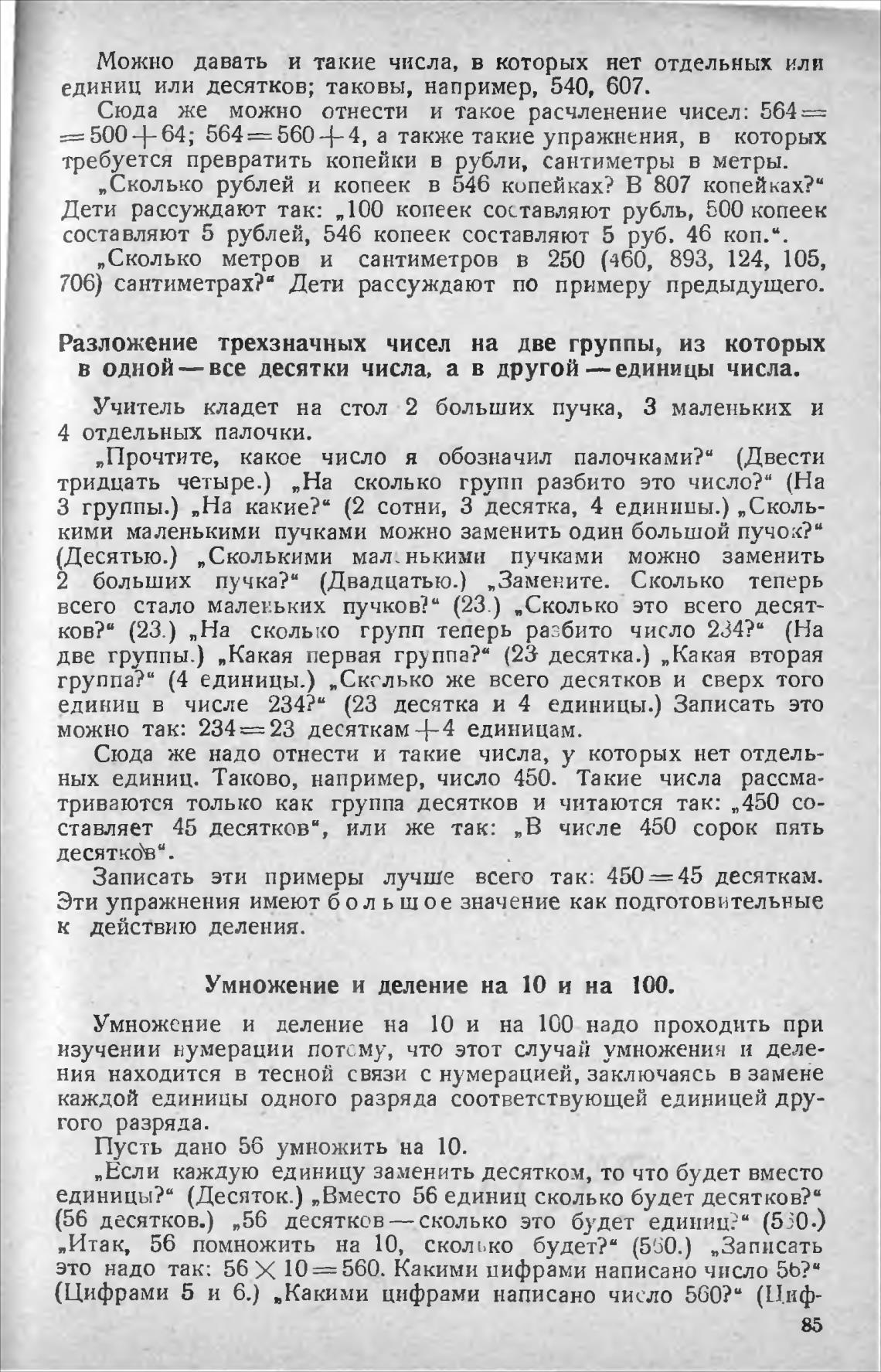 ставляет 45 десятков“, или же так: „В числе 450 сорок пять